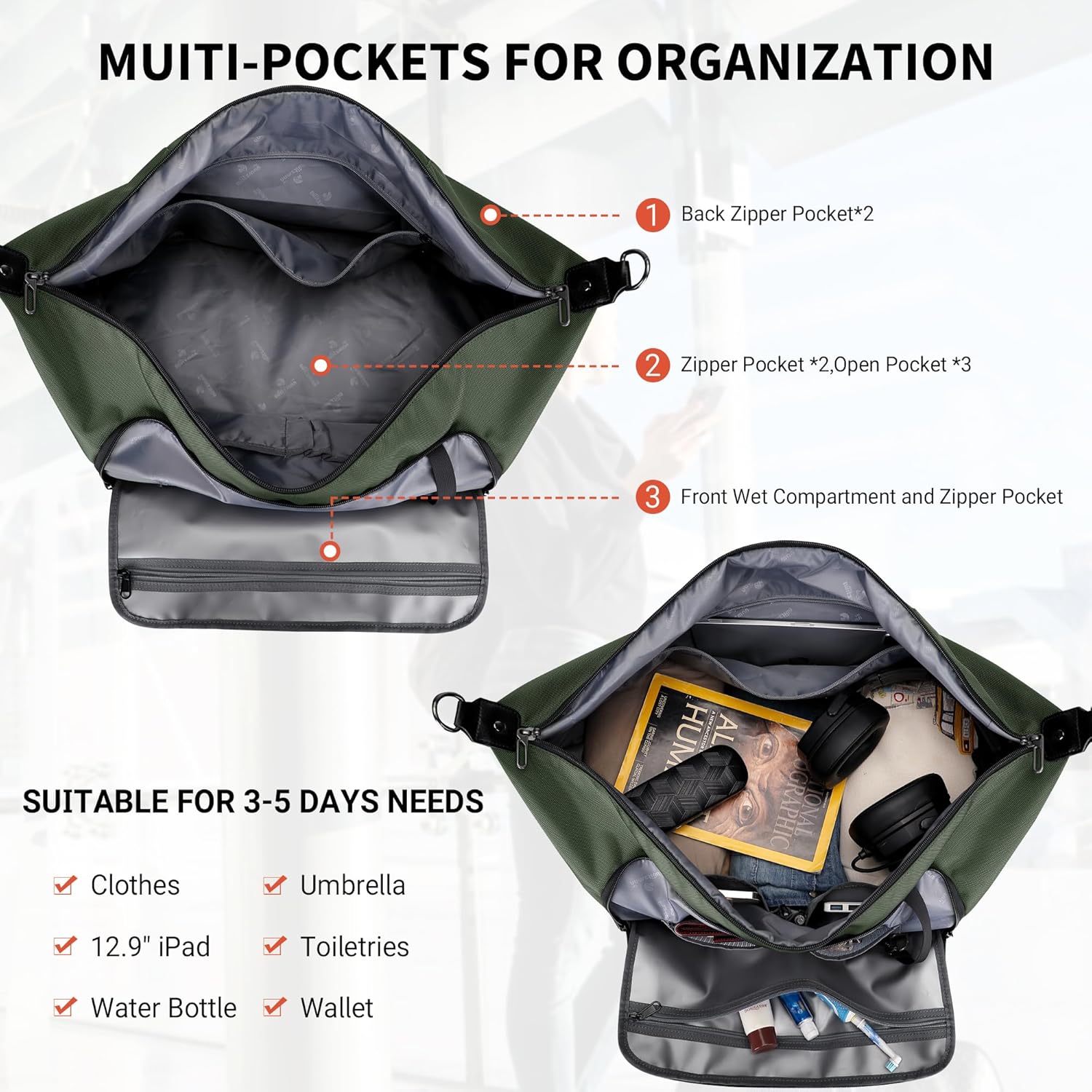 - Multi Functional Bags: This duffle bags comes with a 30-50 inch removable , enabling multiple carrying options: duffel bag, crossbody bag,luggage strap design.