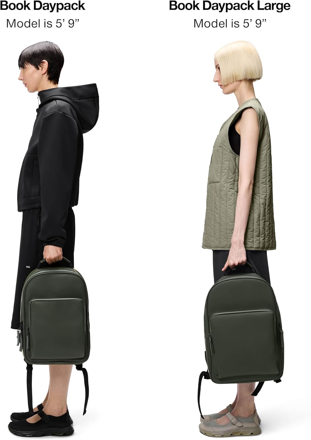 - RAINS SIGNATURE DESIGN: Book Daypack is constructed from Rains’ signature waterproof PU fabric, engineered for carrying strength, durability, and a smooth feel. Waterproof protection from light rain.