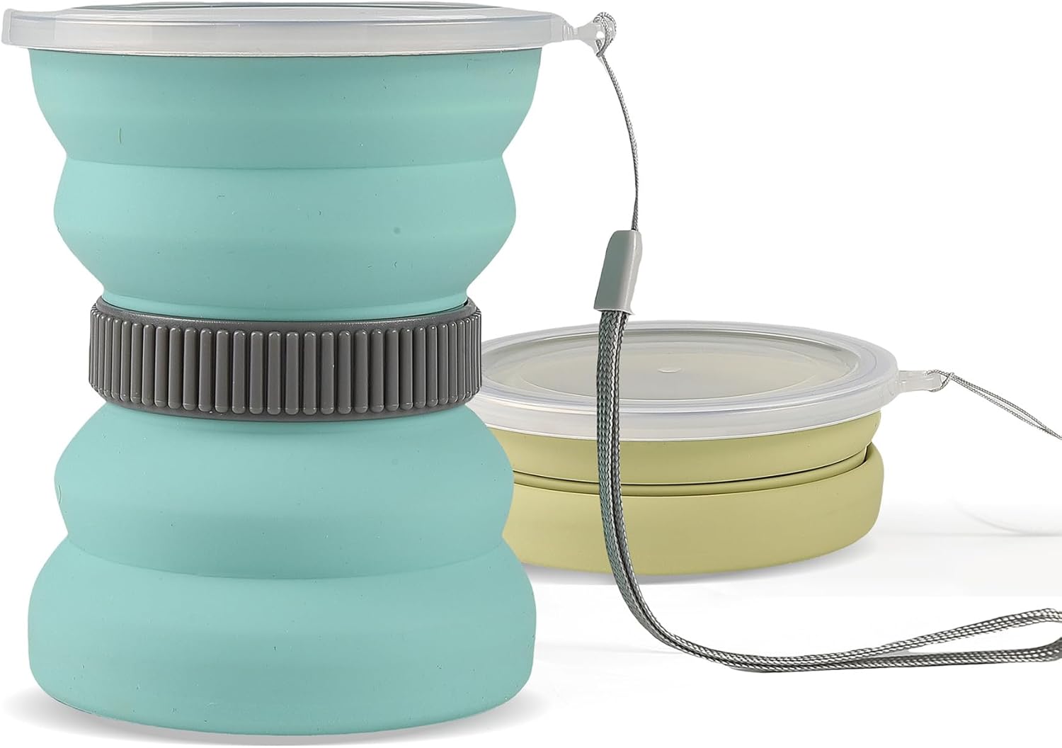 IYYI Collapsible Travel Cup, 10.5oz Foldable Cup with Lid, Silicone Folding Cups for Camping, Hiking, Outdoors, Travel, Portable Camping Cup Set (Green+Sage)