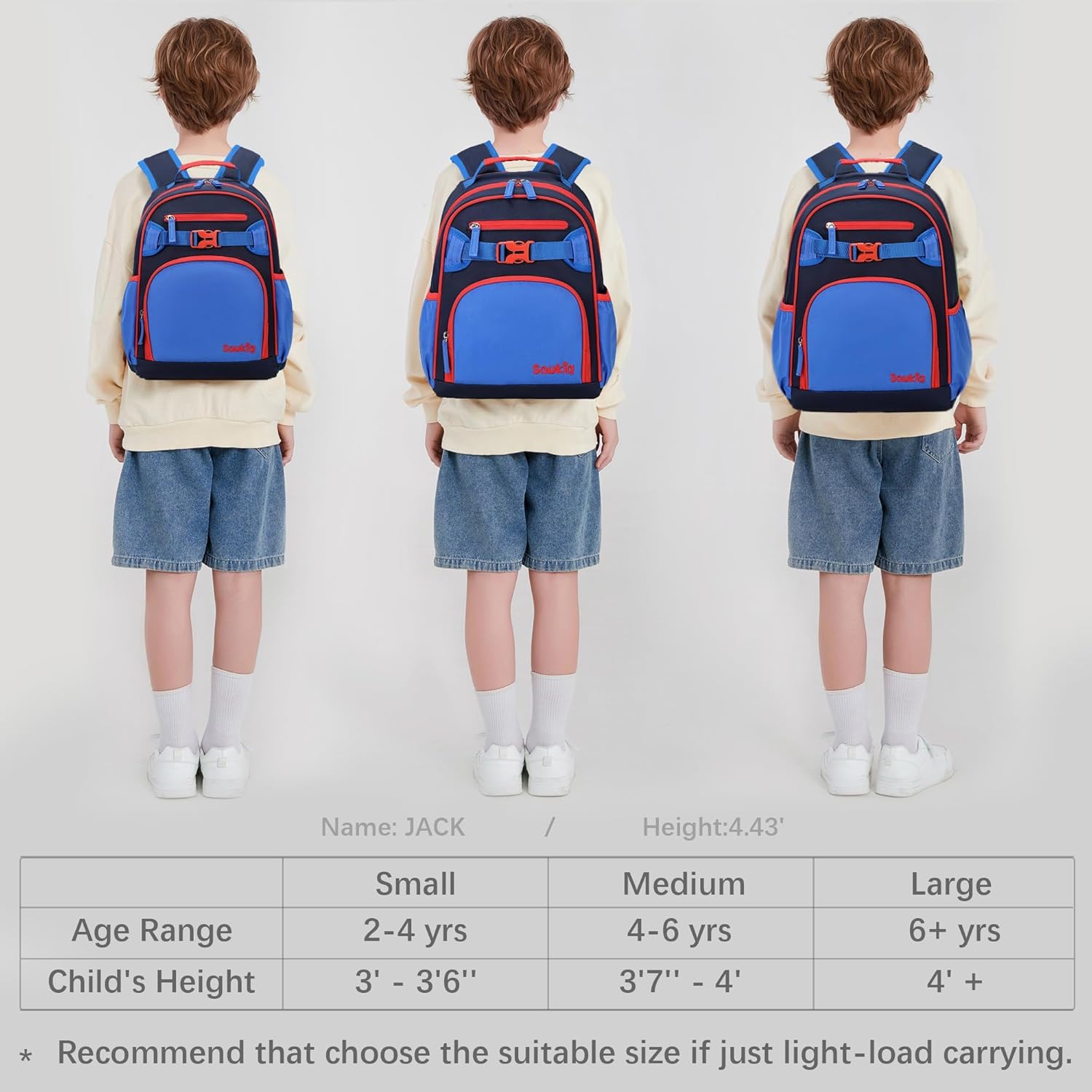 - [Lightweight Designs] The main pocket can be used to store including books and clothes, but it is not enough to store folder. Two side pockets can hold a water bottle. The front zipper pocket can hold small items like snacks or school supplies. Adjustable and slide chest buckle also can make your child carry more firmly and comfortably.Features a reinforced grab handle at the top for easy hand-carrying and quick on-the-go convenience.