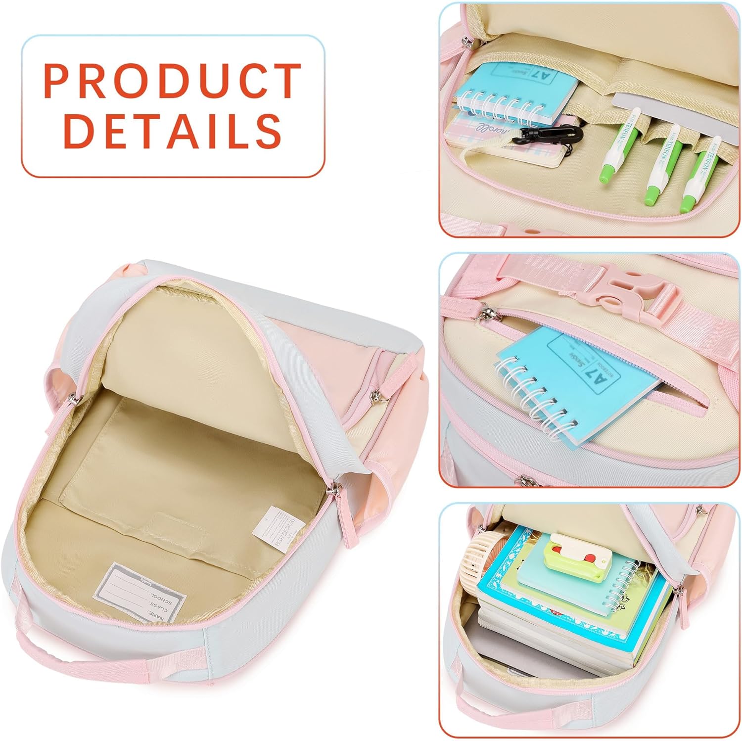 Lightweight Cute Kids Backpack for School Kindergarten Elementary Backpacks for Gilrs ages 6-8-10 (Pink Cream Celeste)