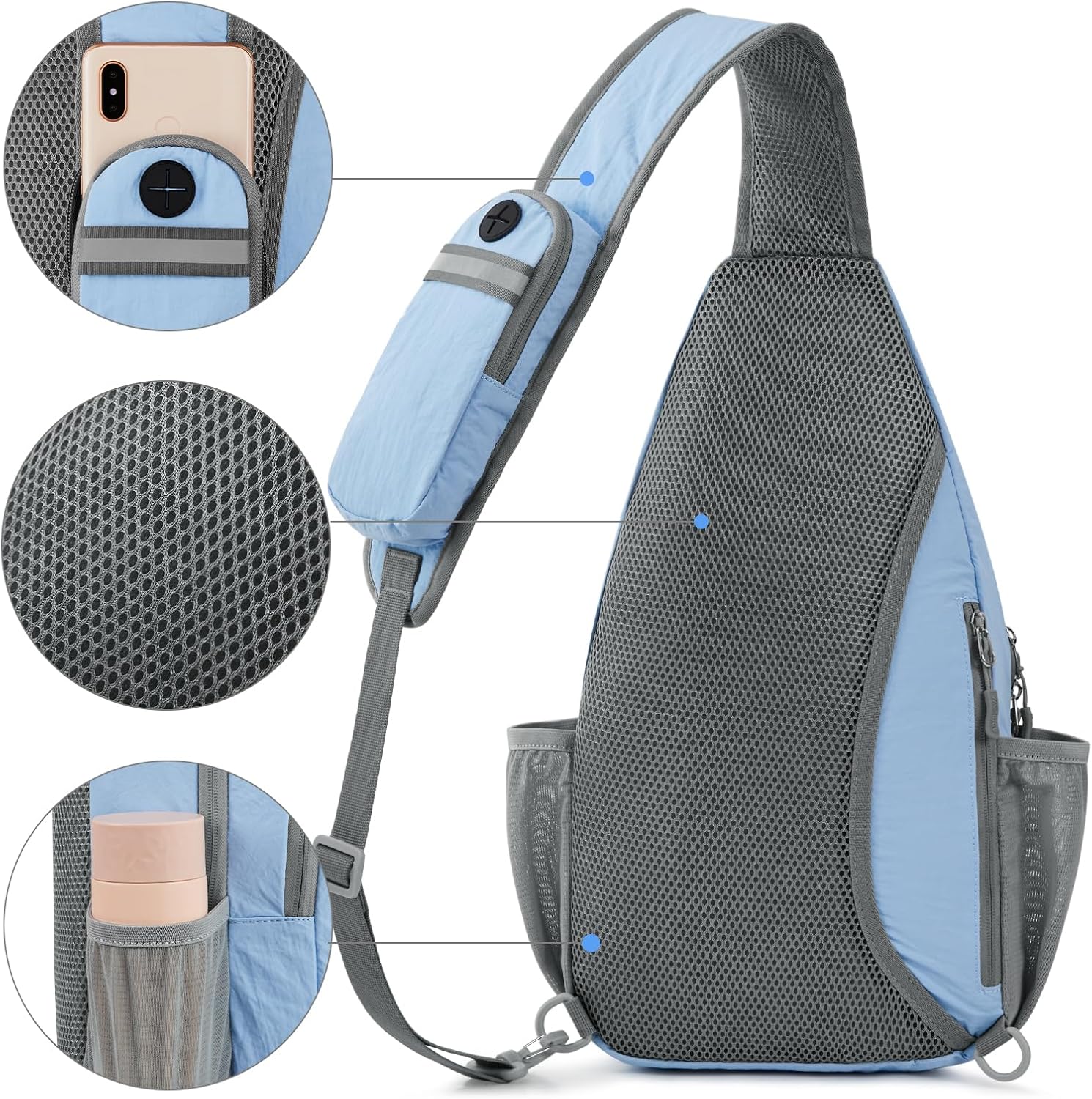 G4Free Sling Bag RFID Blocking Sling Backpack Crossbody Chest Bag Daypack for Hiking Travel (Light Blue)