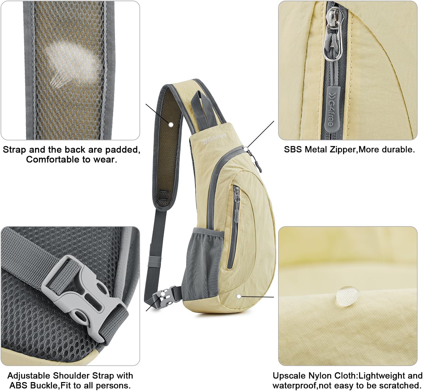 G4Free Sling Bag for Men Women, Small Crossbody Backpack Lightweight Chest Shoulder Bags for Travel, Outdoor and Sports (Yellow)