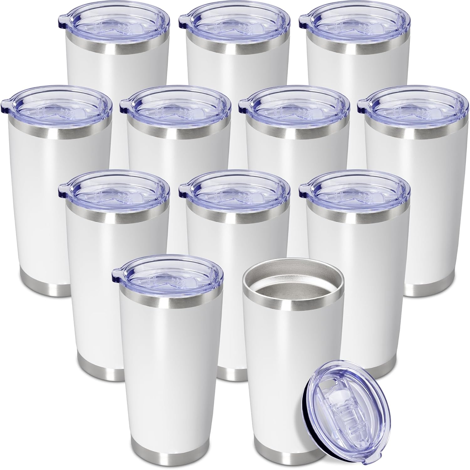 20 oz Tumbler Coffee Tavel Tumblers Bulk with Lid Stainless Steel Double Wall Vacuum Insulated Mug Powder Coated Cups fit Car Cupholder for Hot and Cold - White, 12Pack