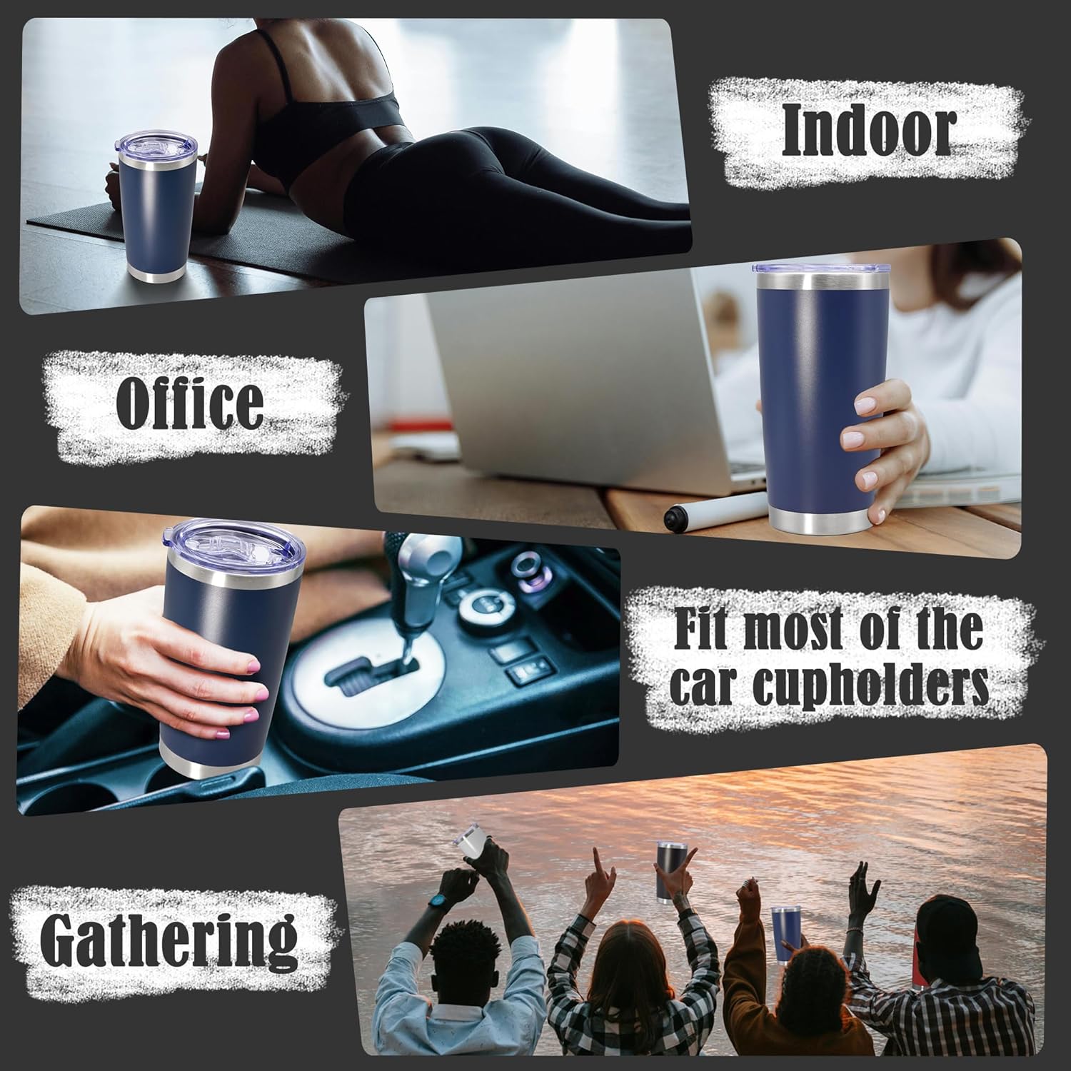 20 oz Tumbler Coffee Tavel Tumblers Bulk with Lid Stainless Steel Double Wall Vacuum Insulated Mug Powder Coated Cups fit Car Cupholder for Hot and Cold - Navy, 4Pack