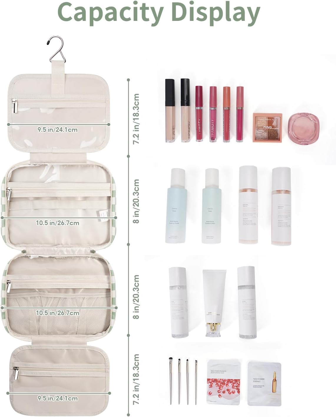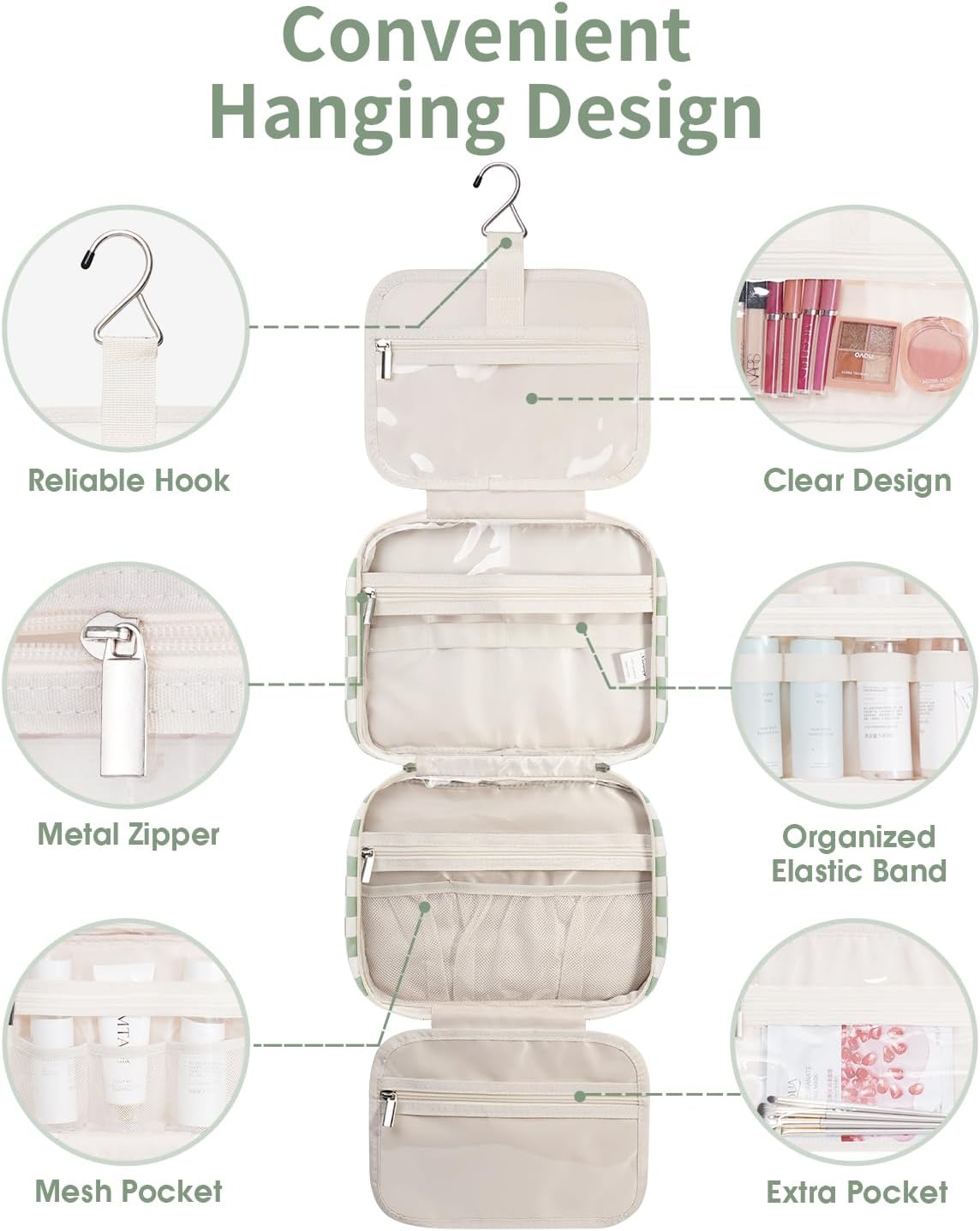 Narwey Hanging Toiletry Bag for Women Travel Checkered Makeup Bag Organizer Toiletries Bag for Travel Size Essentials Accessories Cosmetics (Mint Green Checkerboard (Medium))