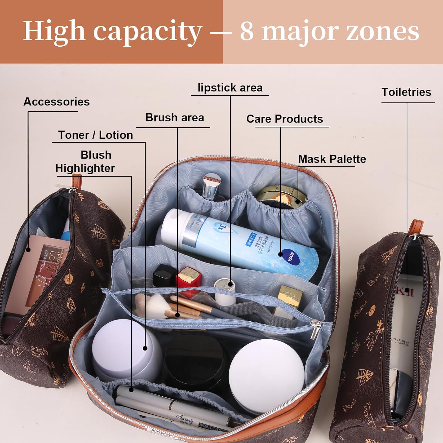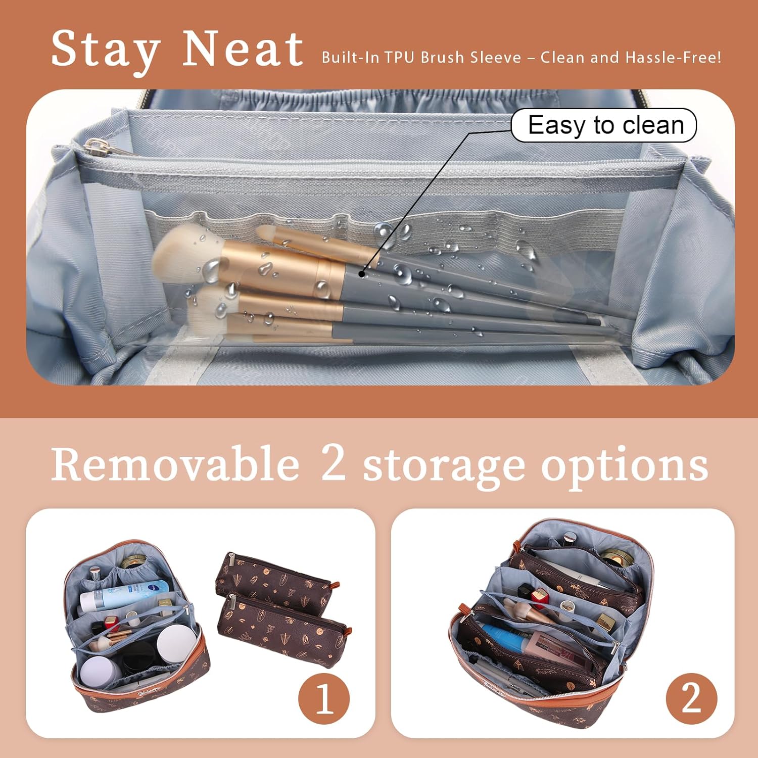 - Multifunctional Makeup Bag: Designed to be dirt-resistant and waterproof, this makeup travel organizer bag is suitable for various settings, whether it's on your dresser, in the bathroom, outdoors, in the car,in the train or packed in your luggage. Keep it by your side to meet your makeup needs anytime, anywhere.