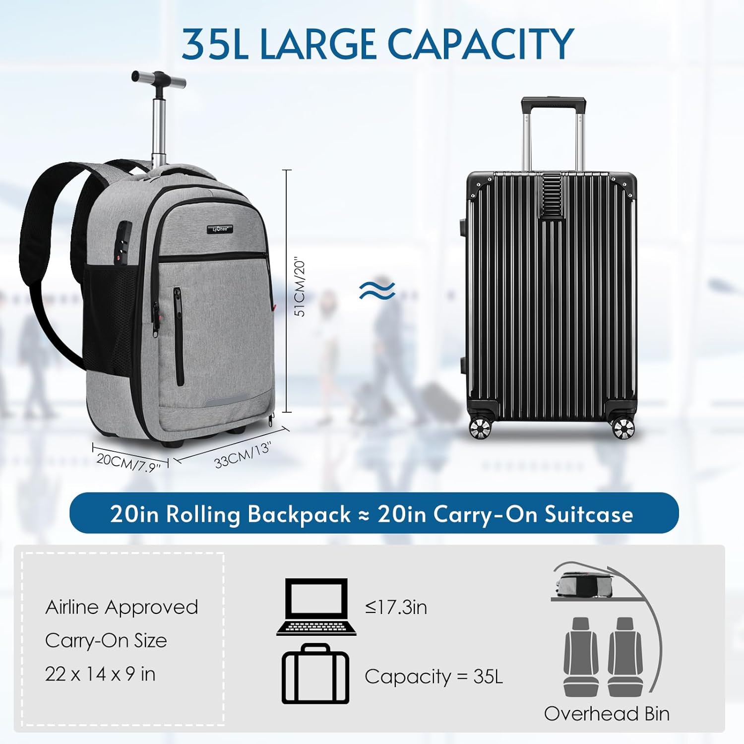 - 【Multi-use environment】This large travel rolling backpack is versatile and great for short trips, commuting,work, or business. It meets flight standards, so you can take it with you on business trips whenever you need.