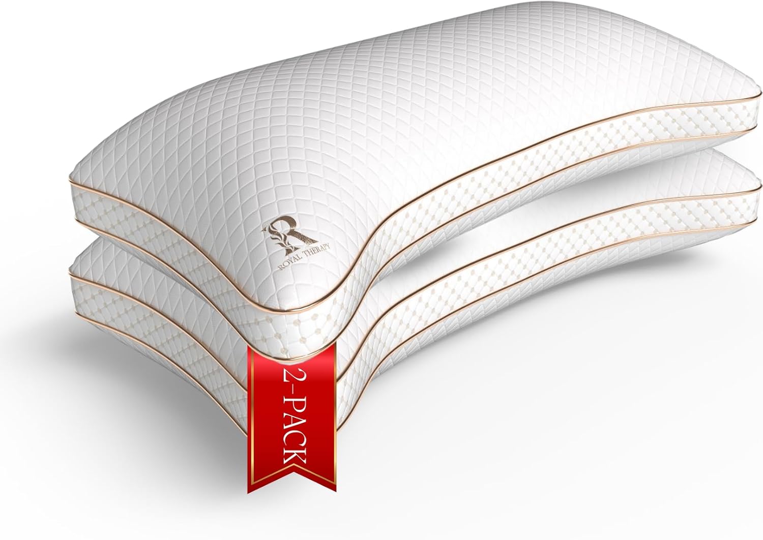 Royal Therapy King 2-Pack Memory Foam Pillow, Adjustable Shredded Odor-Free Pillow for Neck & Shoulder Pain Relief, Support for Back, Stomach, Side Sleepers BioForm