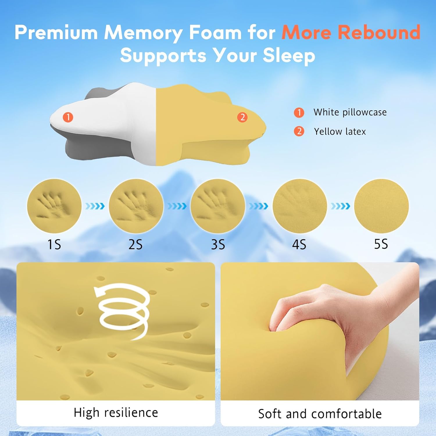 - 93% High-Density Support — Crafted with advanced German-BASF memory foam, this neck pillow for sleeping delivers zero-delay contouring. Designed as side sleeper pillows for adults, the ergonomic pillow integrates a cervical pillow-inspired, weight-responsive structure that cushions shoulders during movement with 3-6 second rebound, reducing cervical pressure by 31%. Activating five-point support to strengthen neck muscle recovery 42% faster in 7 nights, it is the pillow for neck pain relief.