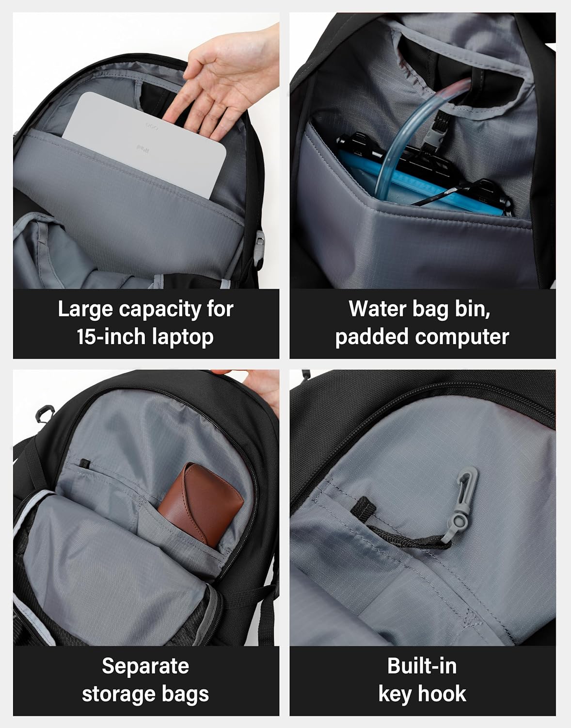 • Ergonomic and Lightweight: Measuring 10.2 x 6.9 x 18.5 inches and weighing only 1.08 pounds, the backpack includes a breathable air channel carrying system that promotes airflow and rapid heat dissipation. The breathable mesh on the back fabric reduces sweating and minimizes the damp heat sensation caused by the backpack’s contact with your back, keeping it dry. The comfortable memory foam padding design helps to reduce the load on your back, offering support and reducing fatigue during hiking.
