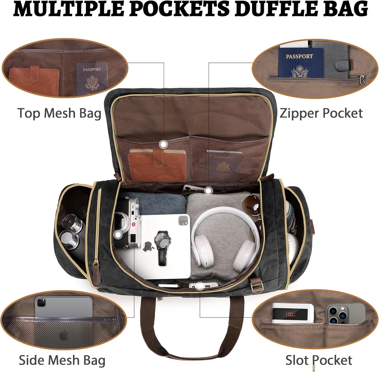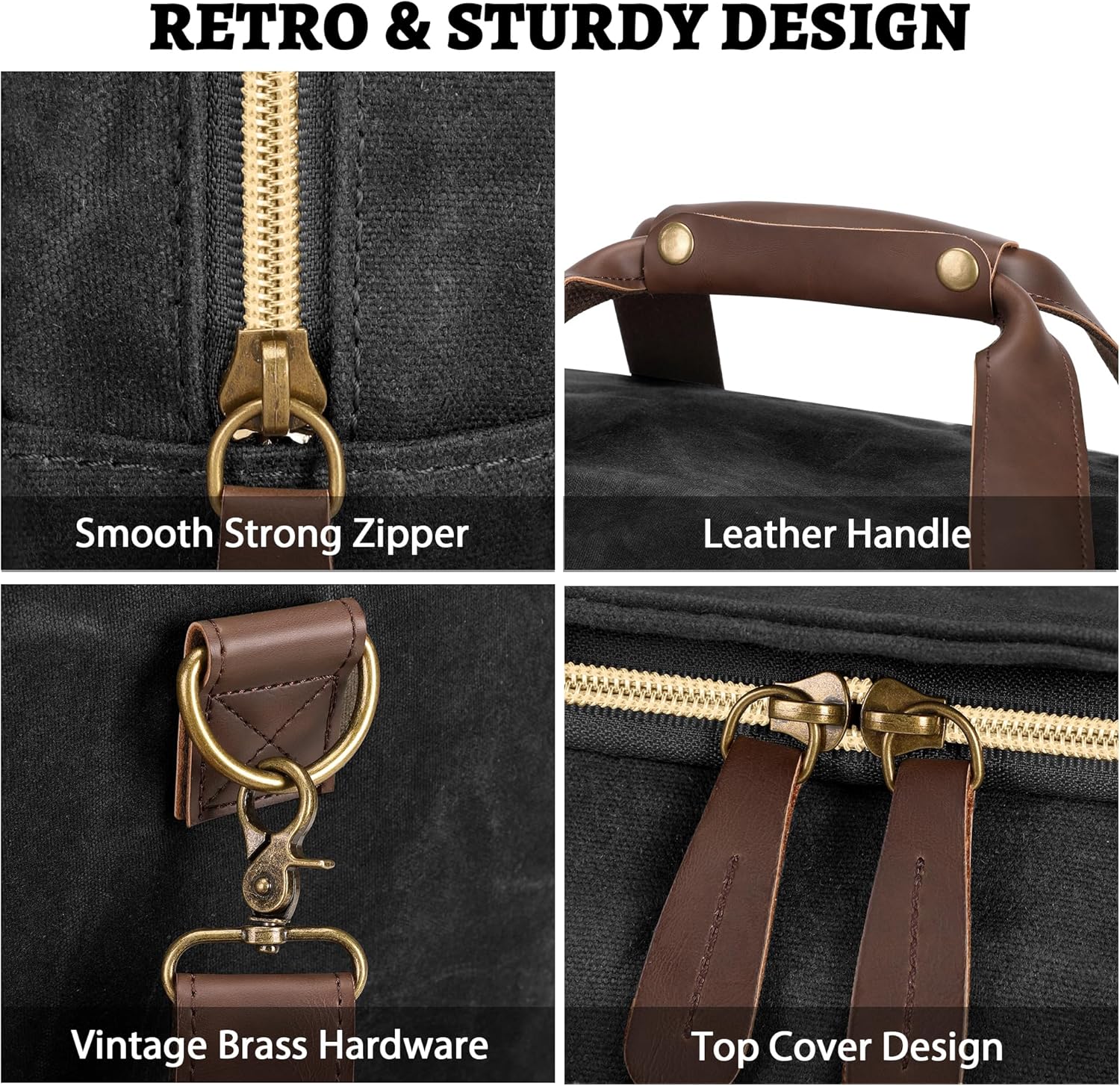 - 【Retro & Classic】Selected heavy duty waxed nomad canvas, thick leather and brass hardware makes this travel bag both retro and durable. Leather handle with metal buttons for comfortable carrying. It can be used as a handbag, messenger bag and backpack, stylish and classic.