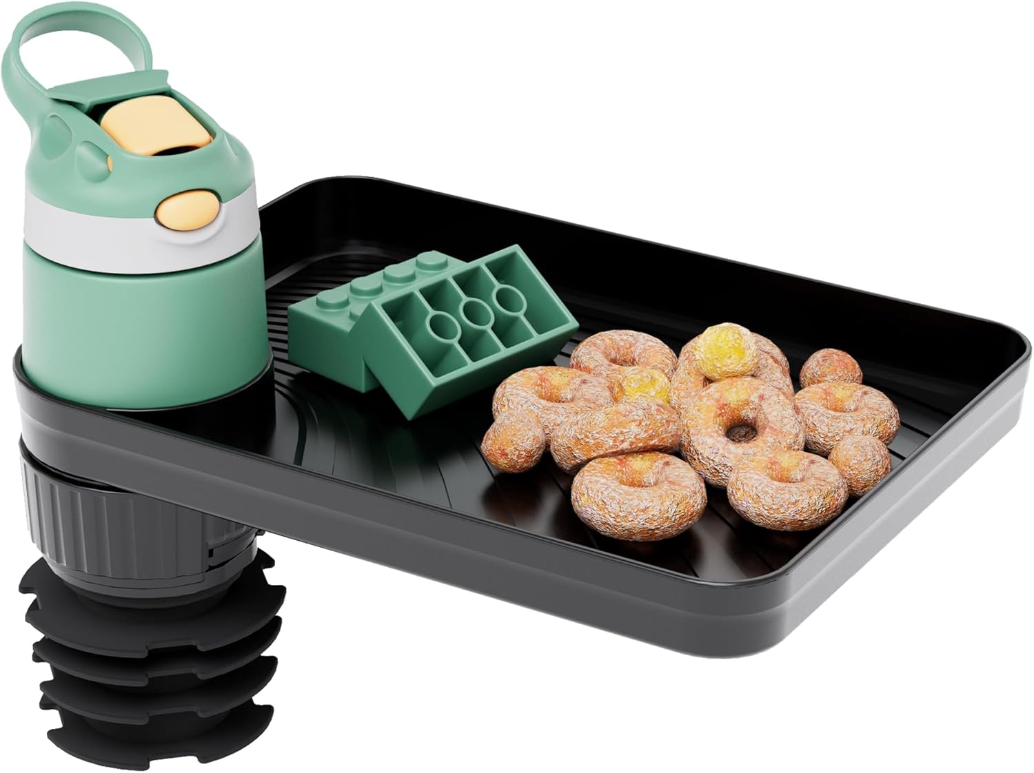 - KID-FRIENDLY MATERIAL: The tray part is made of advanced food-safe ABS plastic, sturdy and kid-friendly for long time using, and has an anti-slip design, which effectively prevents snacks and drinks from sliding off, ensuring that the car is clean and tidy. Whether it is a water cup or a small toy, the tray can be firmly fixed.The base is made of durable rubber, which makes the tray installed firmly in the cup holder and prevent it from falling easily.
