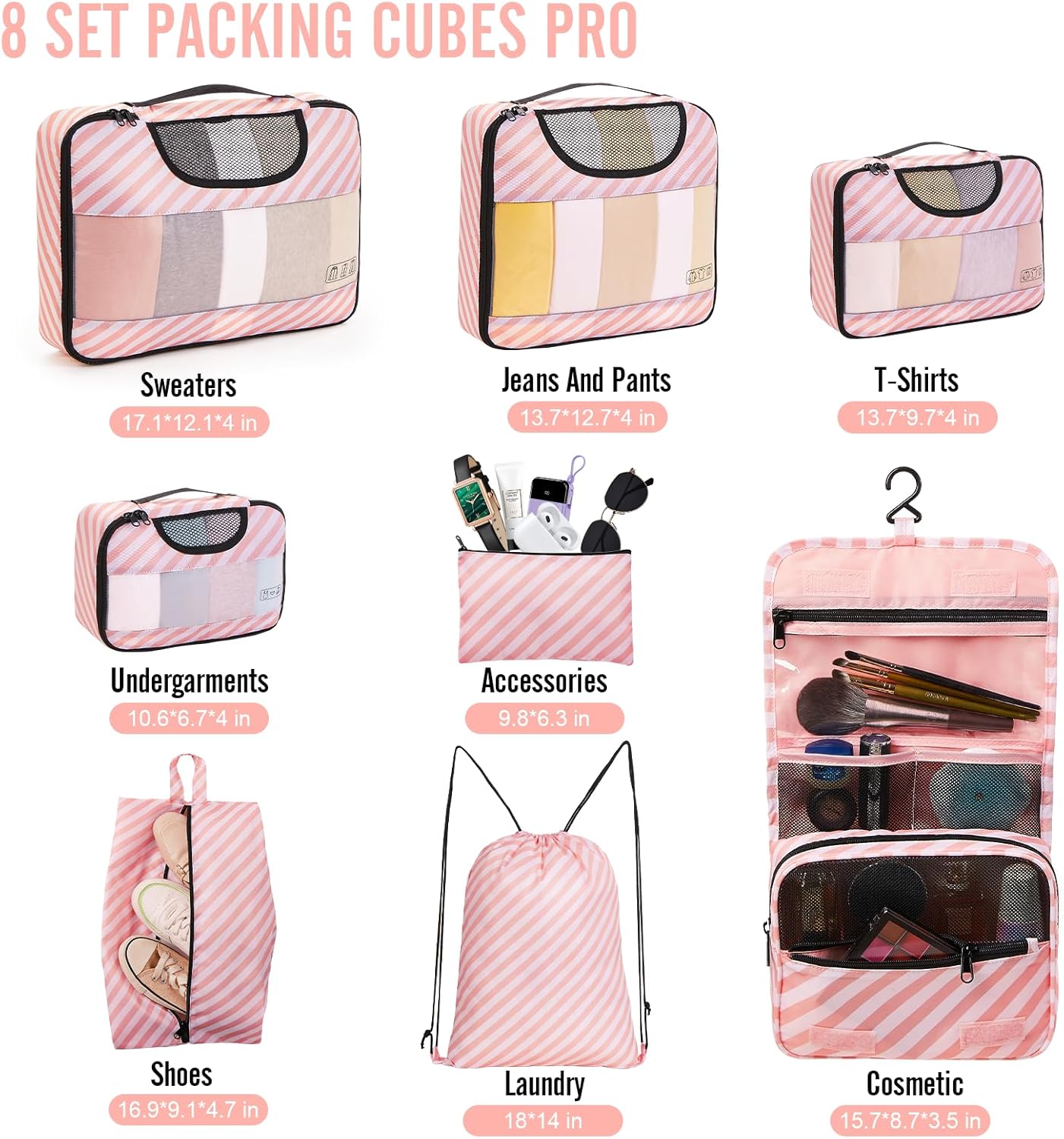 Veken 8 Set Packing Cubes for Travel Essentials, Suitcase Organizer Bags in 4 Sizes, Carry-On Luggage Accessories with Large Laundry & Hanging Toiletry Bag, Must-Have for Airplane, Road Trip & Camping