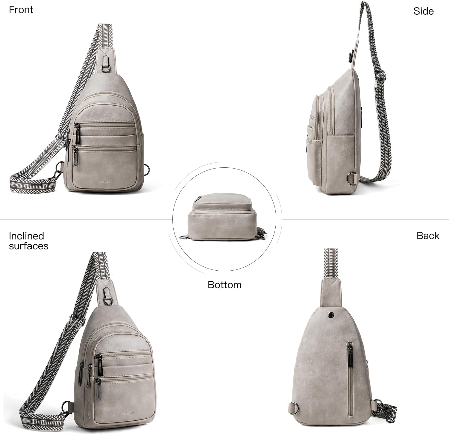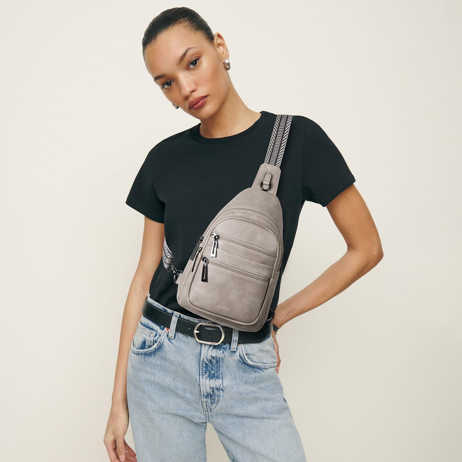 Sling Bag for Women Crossbody Bags Fanny Packs Sling Purse Backpack Shoulder Bag Vegan Leather Chic Travel Light Grey