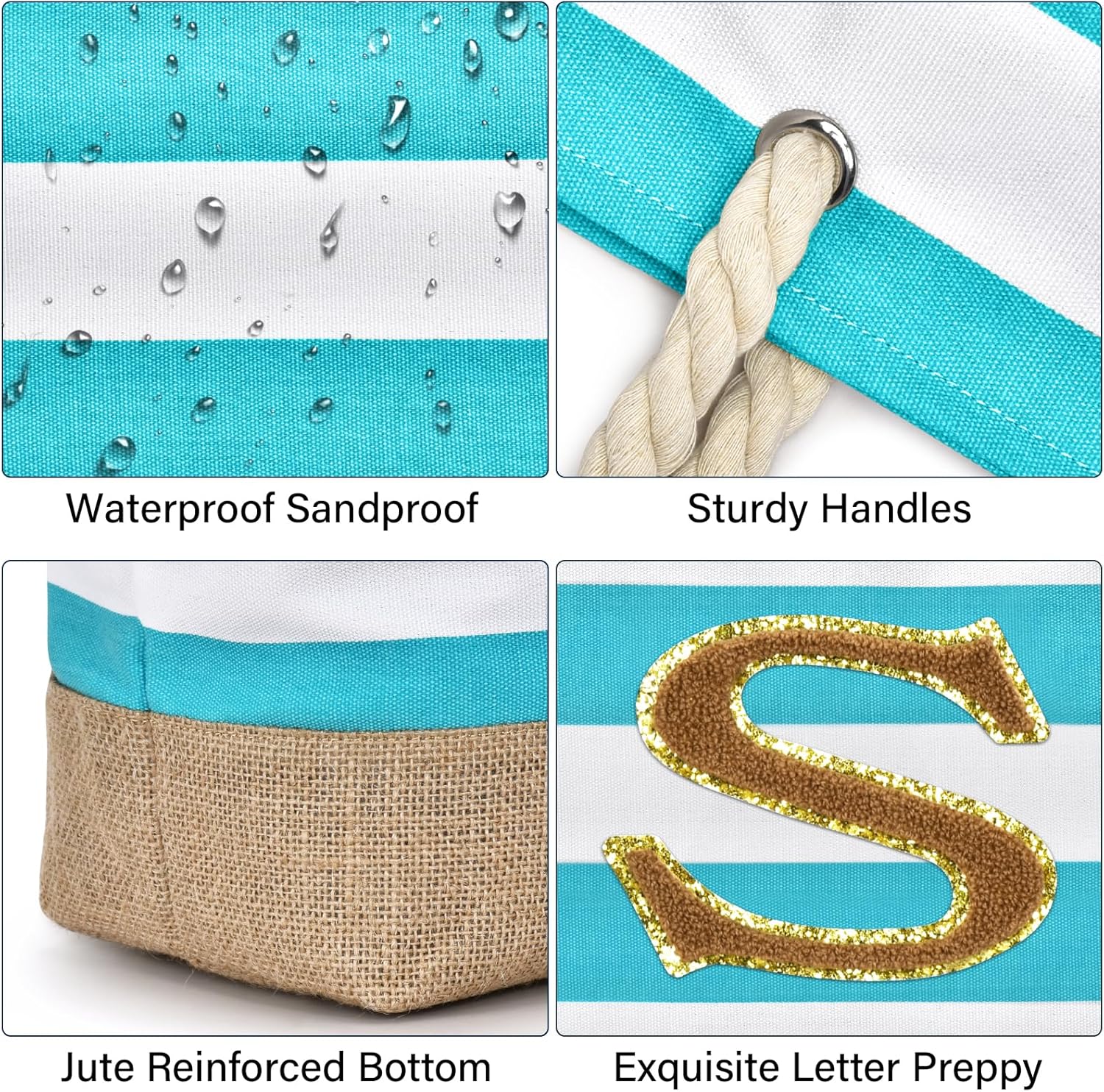 - Stylish & Unique Design: Adorned with a chic, stitched chenille letter edged in gold, the canvas tote bag is both stylish and unique. The letter symbolizes your individuality, while the classic stripe pattern and reinforced jute bottom add a touch of sophistication, making it suitable for any occasion