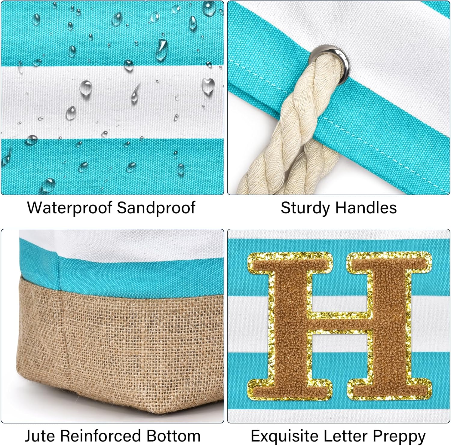 - Stylish & Unique Design: Adorned with a chic, stitched chenille letter edged in gold, the canvas tote bag is both stylish and unique. The letter symbolizes your individuality, while the classic stripe pattern and reinforced jute bottom add a touch of sophistication, making it suitable for any occasion