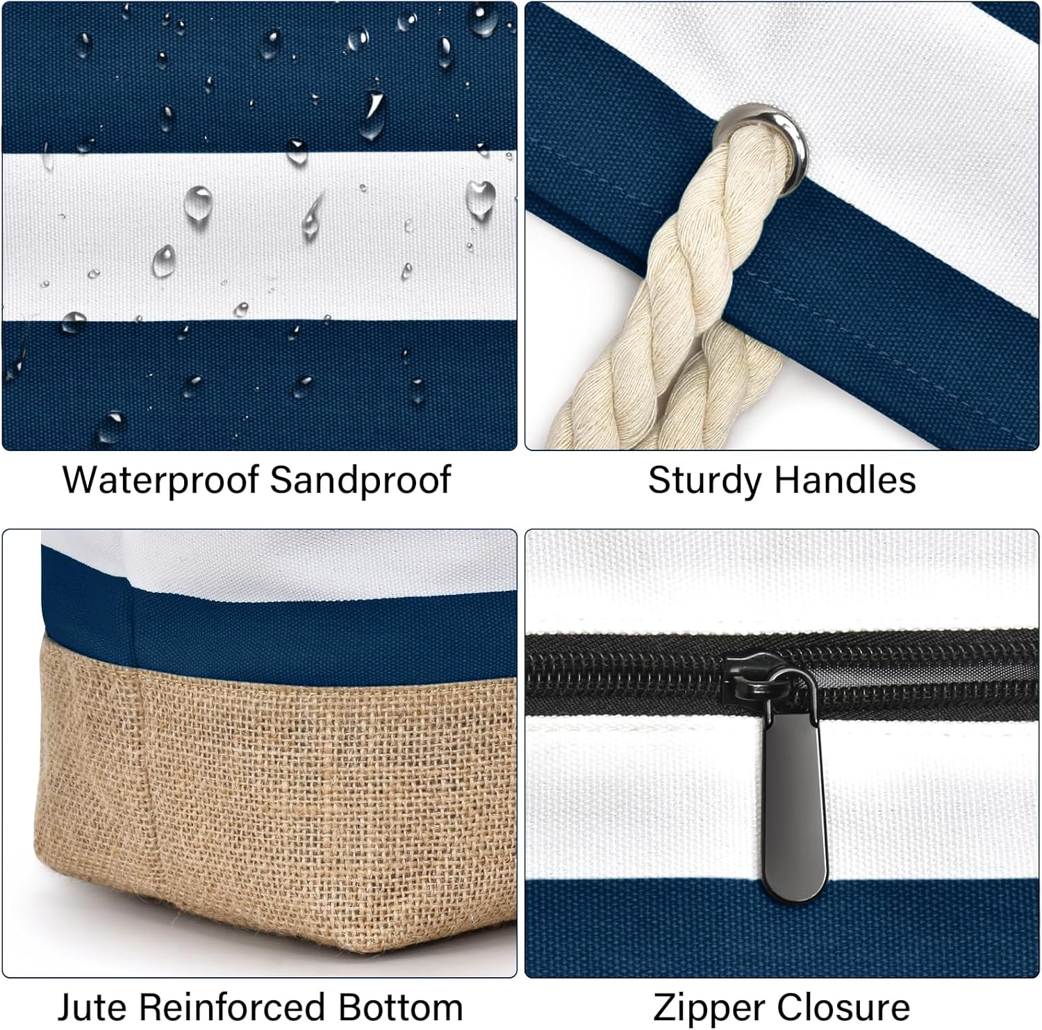 - Premium Materials: The beach tote bag is crafted with a study canvas exterior and a smooth polyester lining. The zipper glides smoothly and securely closes the bag, keeping your essentials safe and well-organized
