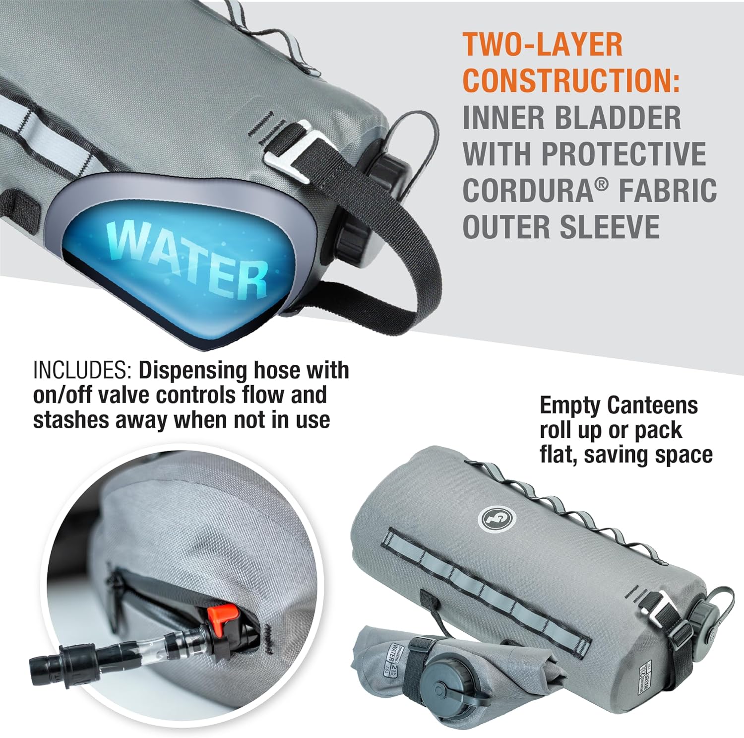 - SPECS: With a two-layer construction, it features an inner bladder and outer cover. Both layers are built with thick, durable, abrasion- and puncture-resistant materials for years of service in extreme environments. Available in 1-gallon, 2-gallon, 3-gallon and 5-gallon capacities.