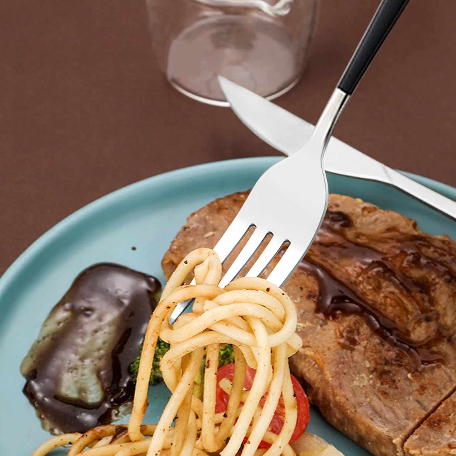 - THOUGHTFUL DESIGN: There is a fixed slot in the travel case to reduce collision and protect the silver tableware set for lunch box. Also reduce frictional noise when on the go. Storage box provides hygiene and health protection for the stainless steel flatware set.