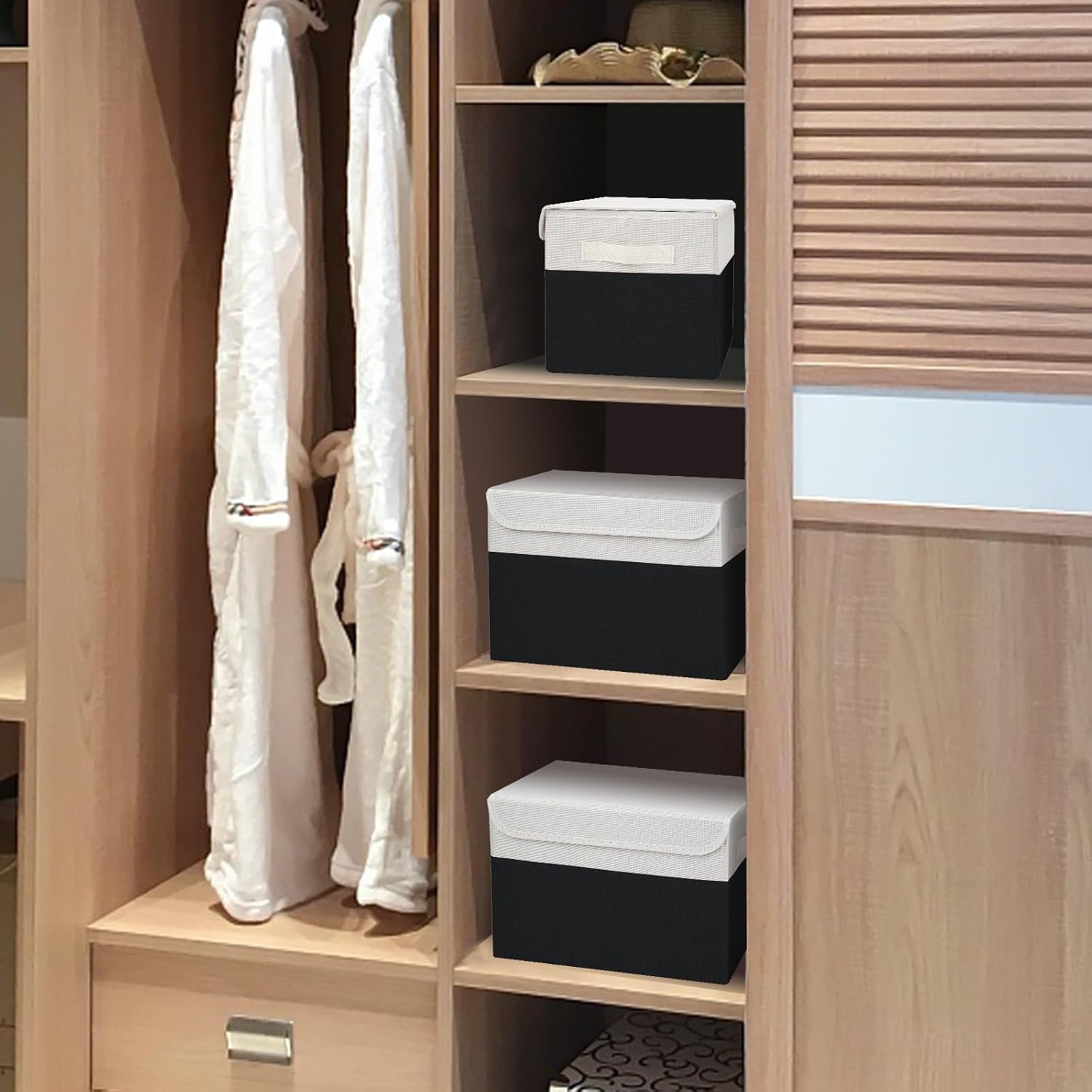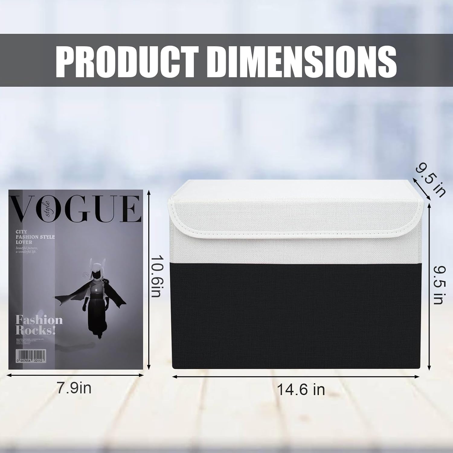 Large 22 Quart Linen Fabric Foldable Storage Bin Cube Organizer Basket with Flip-Top Lid & Handles, Clothes Blanket Box for Home, Office, Closet, Black & White, 4 Pack 14.6 x 9.5 x 9.5
