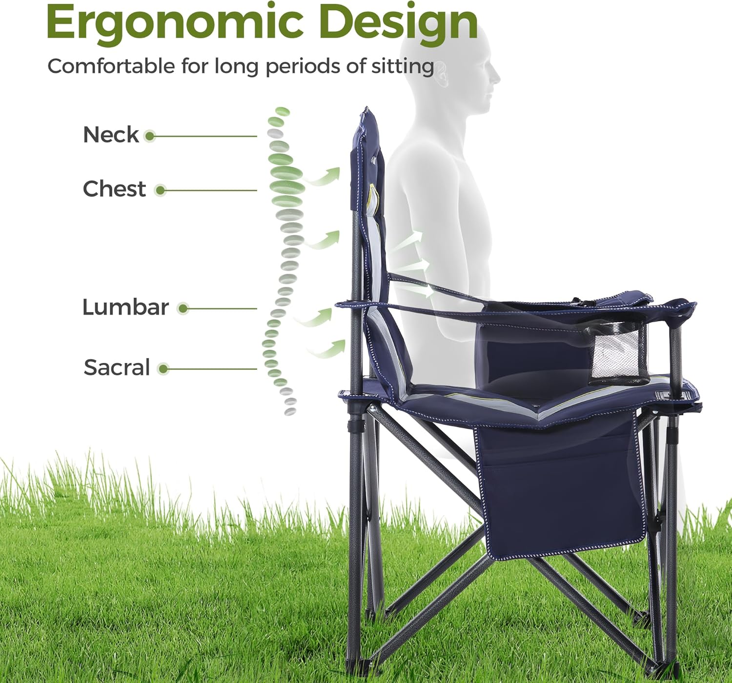ALPHA CAMP Oversized Camping Chair Heavy Duty Lawn Chair with Cooler Bag Support 450 LBS Steel Frame Collapsible Padded Arm Quad Lumbar Back Folding Chair for Lawn Outdoor