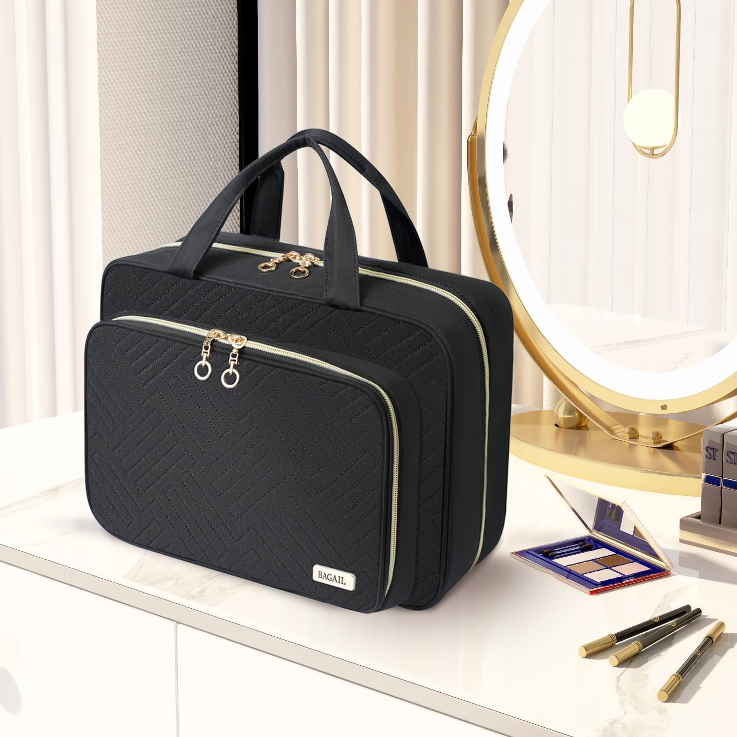 BAGAIL Hanging Toiletry Bag for Women Water-resistant Cosmetic Bag Large Capacity Travel Makeup Organizer for Full-Sized Travel Essentials(Standard, Black)