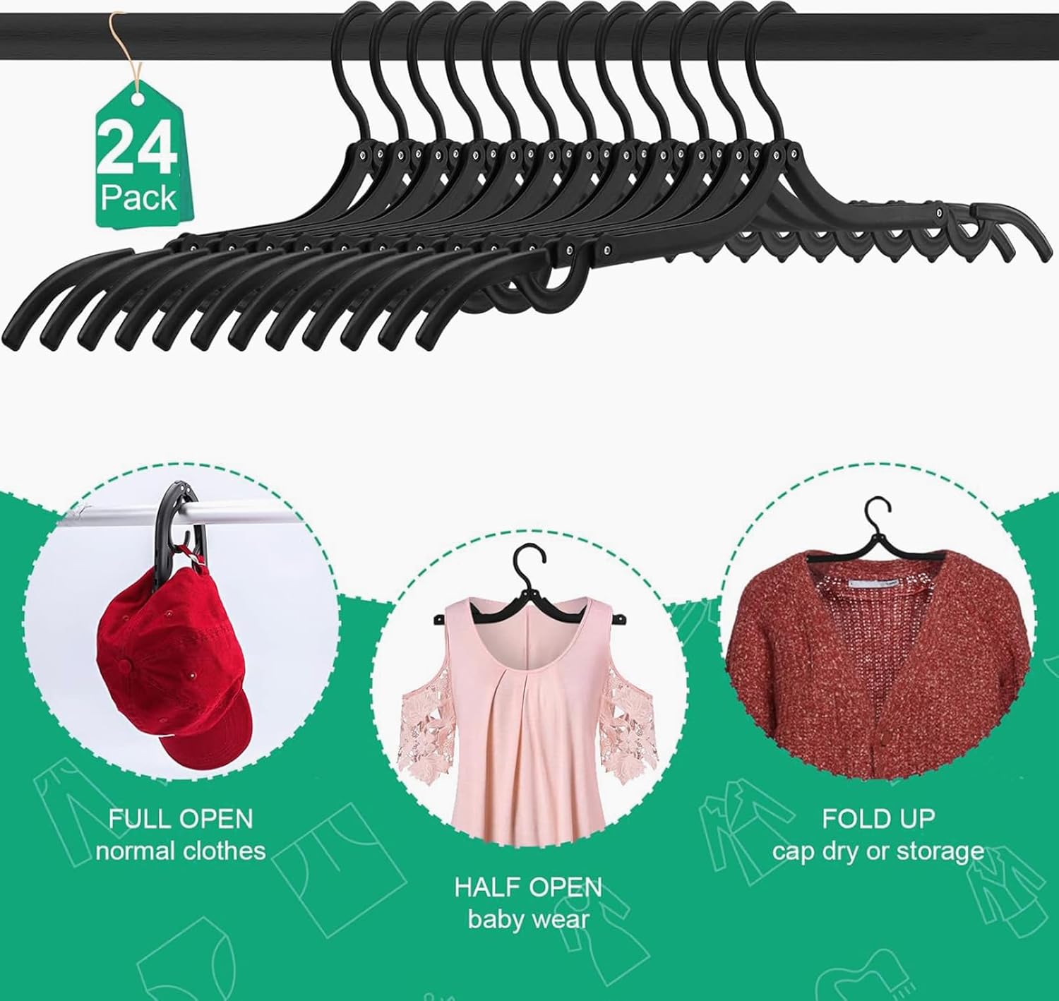 - Quality: These folding hangers are made from PP plastic, making them strong and durable. They are reinforced with double rivets to prevent loosening, while still allowing for flexible rotation and smooth folding.