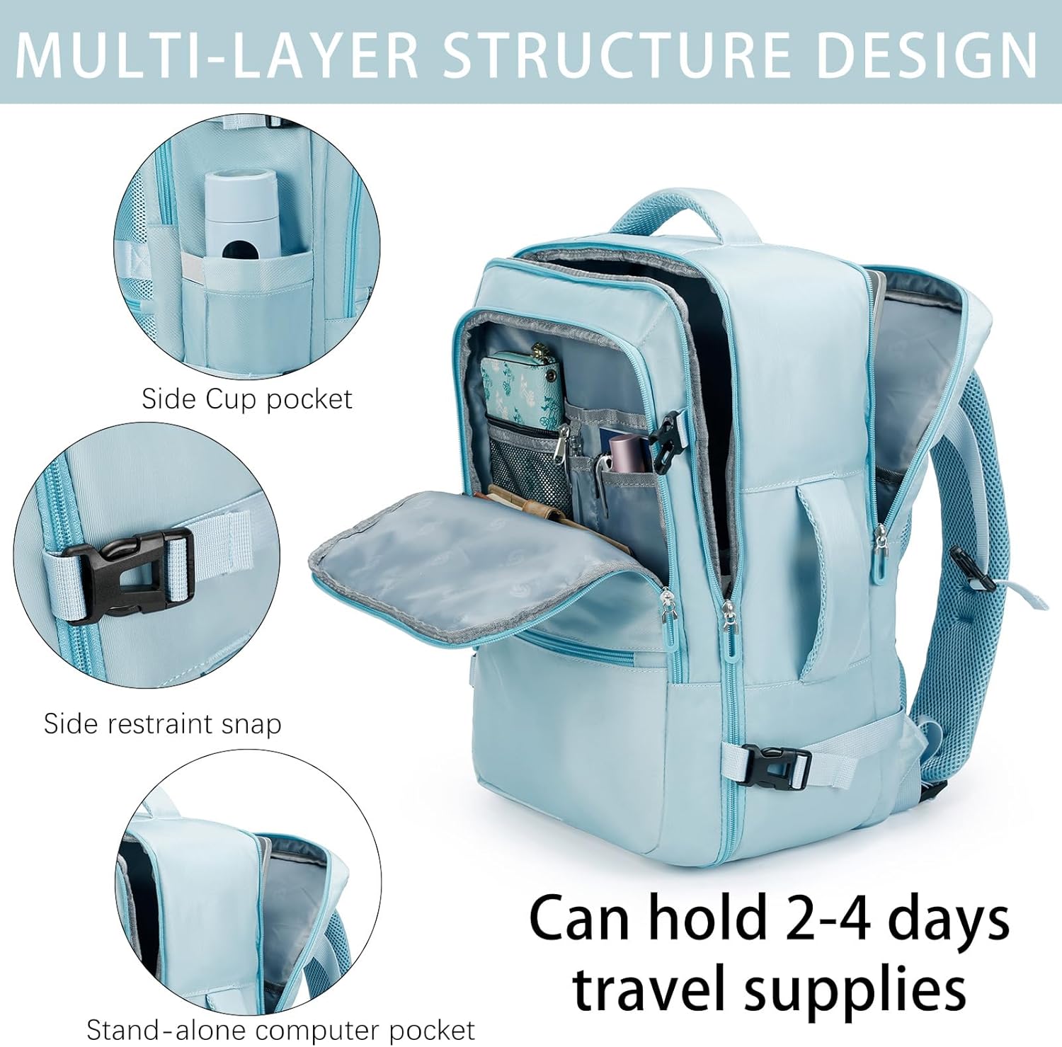 Sowaovut Travel Laptop Backpack, Extra Large High School College Backpacks, Flight Approved Daypack Business Bag Fit 17.3 inch Laptop for Men Women (Light Blue)