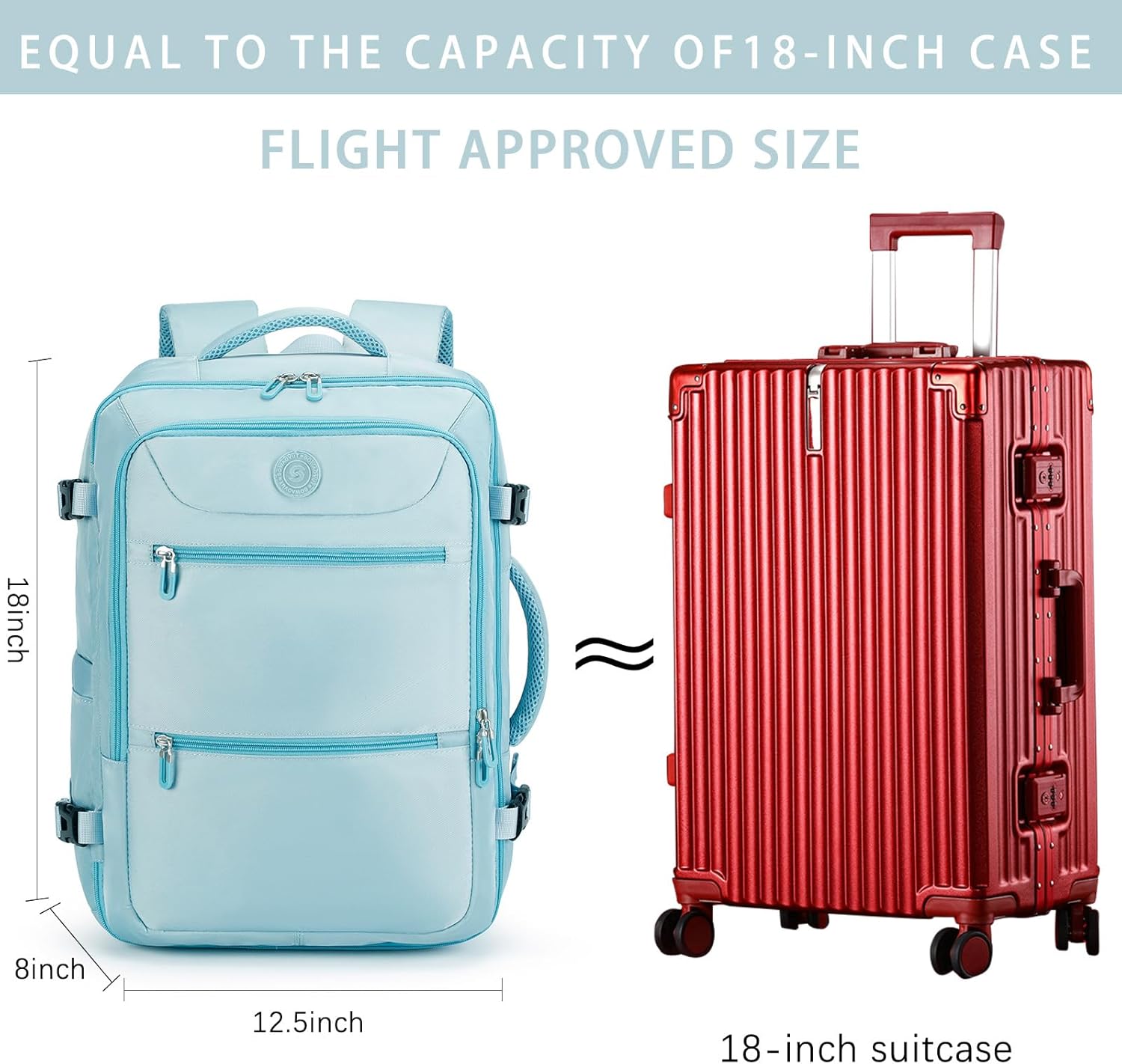 - STURFY AND LIGHTWEIGHT, SUITABLE FOR TRAVEL: The travel backpack is made of lightweight and sturdy polyester material, with a zipper that is easy to close and open. This portable backpack meets the personal carry on standards of airlines and can be installed under the overhead luggage rack or seat. You can easily install travel equipment for 2-4 days, equivalent to the capacity of an 18 inch suitcase, making it a good choice for weekend vacations and business trips