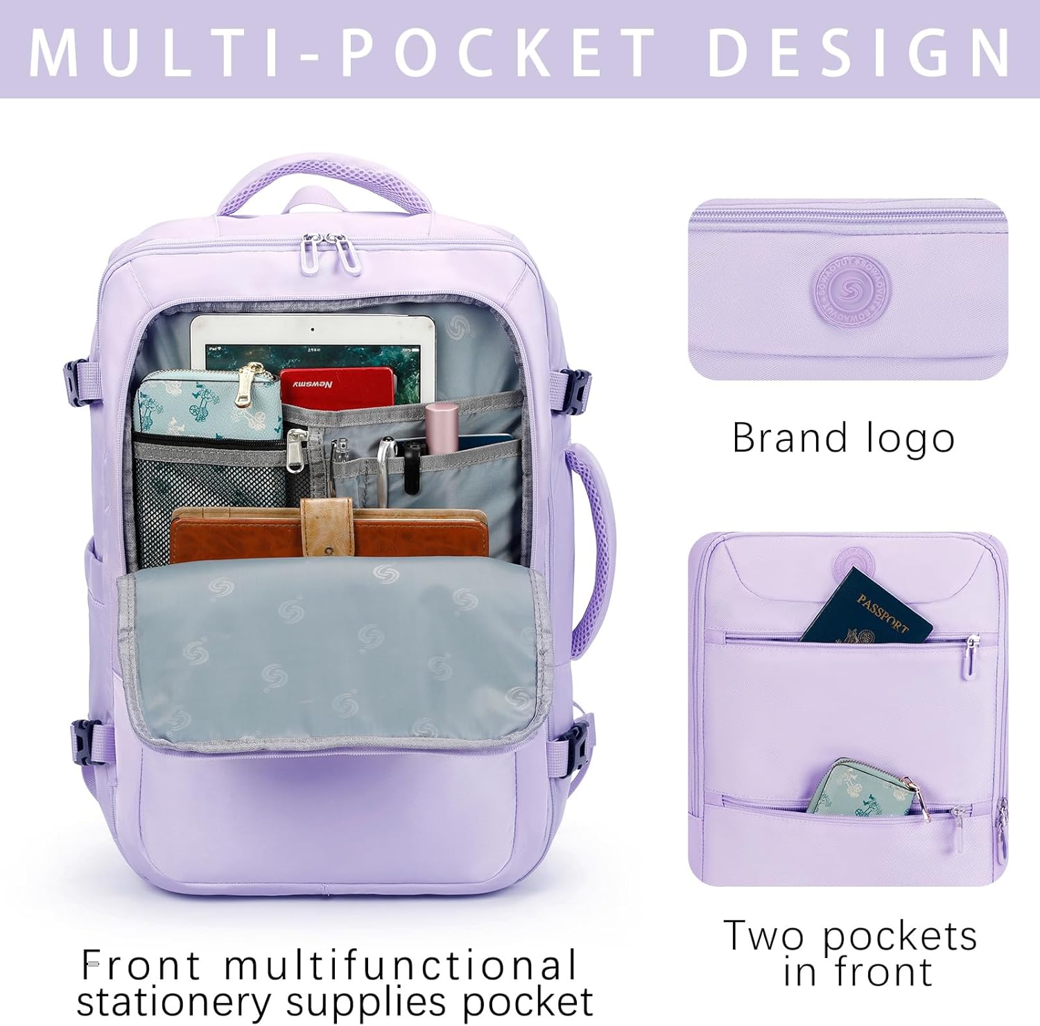 - STURFY AND LIGHTWEIGHT, SUITABLE FOR TRAVEL: The travel backpack is made of lightweight and sturdy polyester material, with a zipper that is easy to close and open. This portable backpack meets the personal carry on standards of airlines and can be installed under the overhead luggage rack or seat. You can easily install travel equipment for 2-4 days, equivalent to the capacity of an 18 inch suitcase, making it a good choice for weekend vacations and business trips