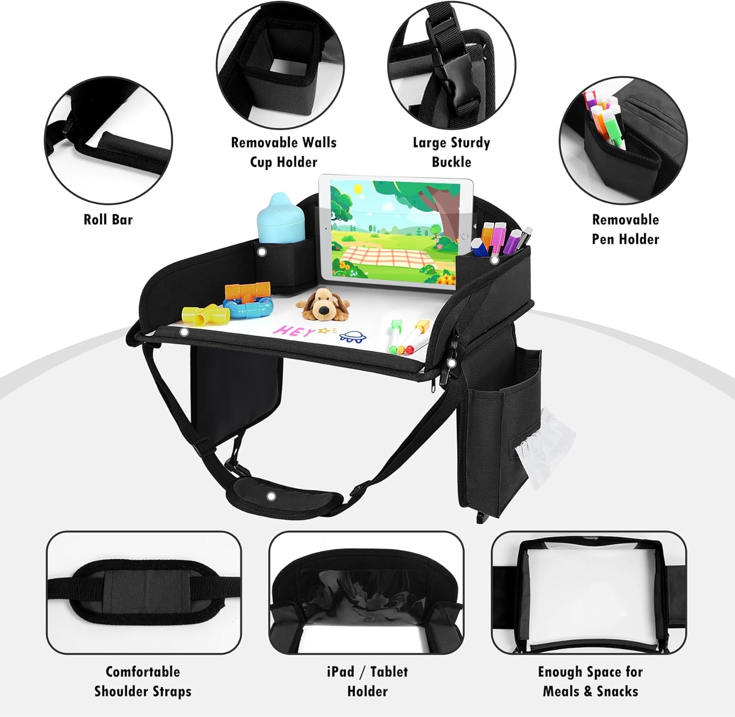 - Ideal For Road Trips: Whether in the car, in the stroller or on the plane, wherever and whenever your child's creativity needs you, you can take the car seat table tray with you! Carseat table trays can exercise your kids imagination and stimulate their hidden potential through play, and kids attention and independence are significantly improved in this case