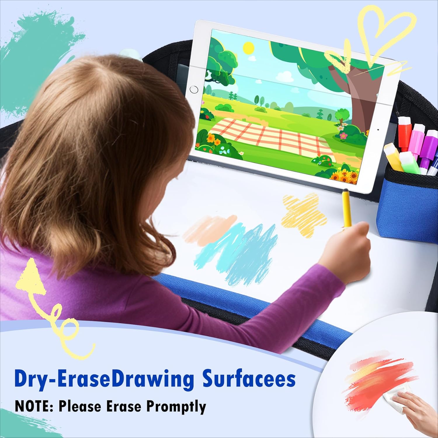 Kids Travel Tray for Airplane - Toddler Car Seat Table Tray, Road Trip Essentials for Boys & Girls, Carseat Lap Desk for Kids Road Trip Activities(Navy Blue)