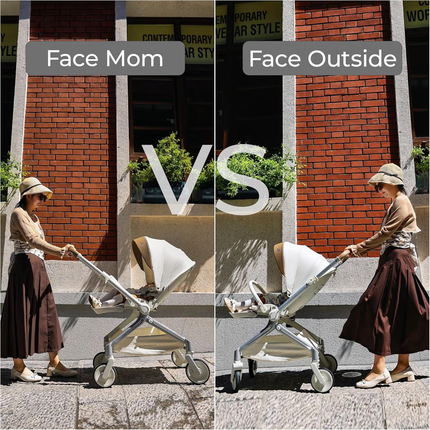 - This lightweight stroller designed for modern moms combines fashion with practicality, catering to the needs of everyday life with a range of innovative features. The use of magnesium alloy for the frame ensures durability while keeping the stroller lightweight and manageable, even for solo parents traveling with their baby.