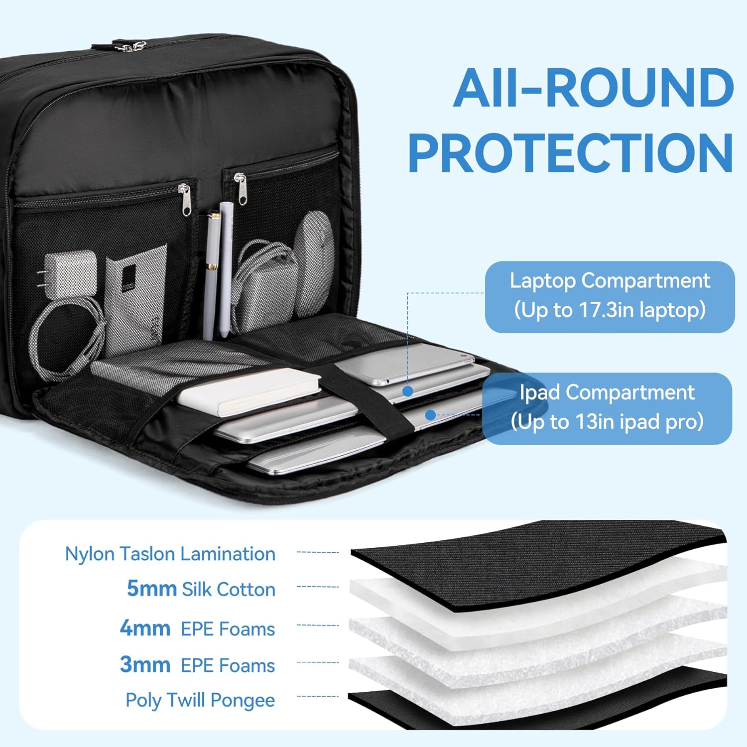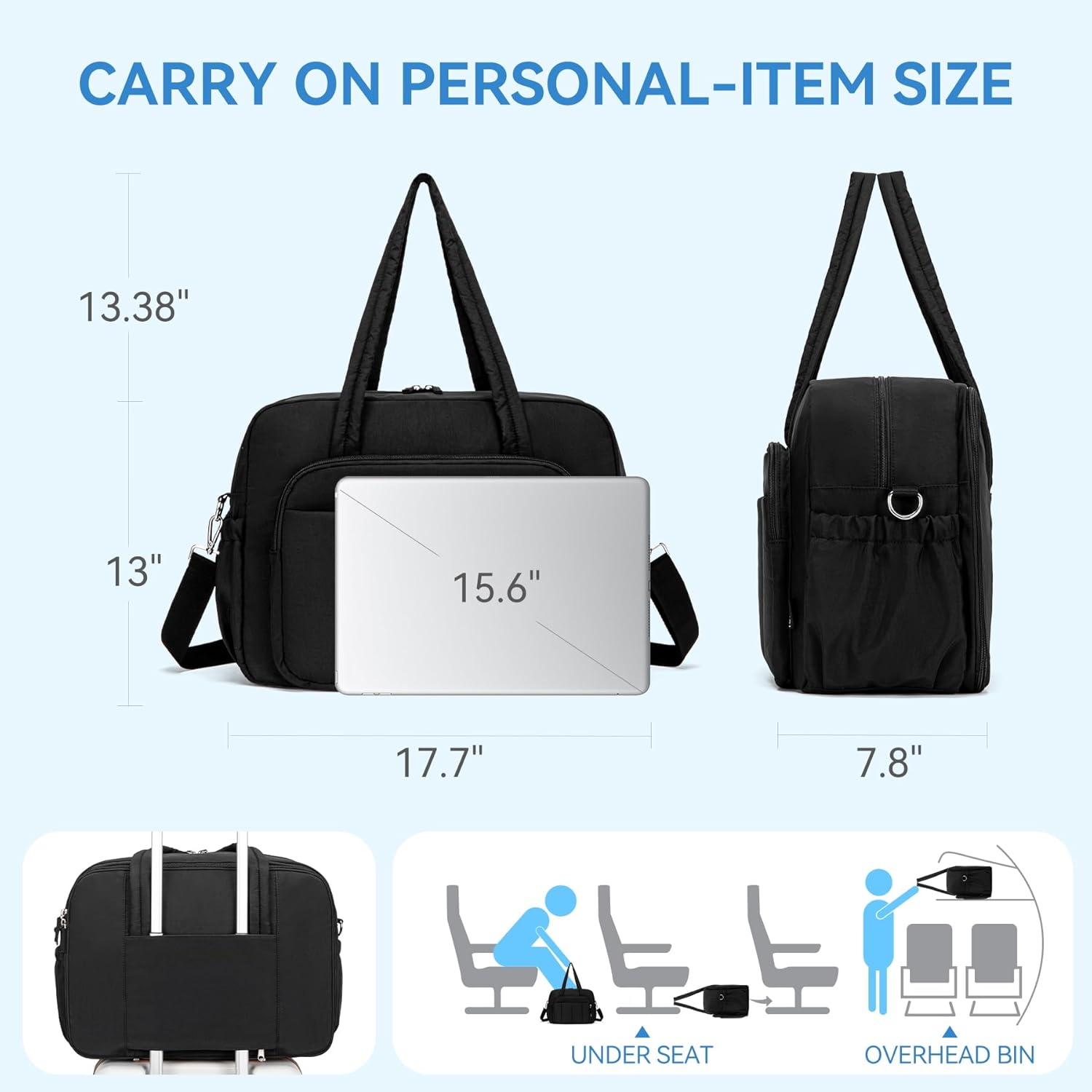 • Convenient travel: This carry-on bag measures (length) 17.3x (width) 13x (height) 7.8 inches. The travel duffel bag can also be carried on the plane, and the computer compartment can be opened 180 degrees to quickly pass through security.