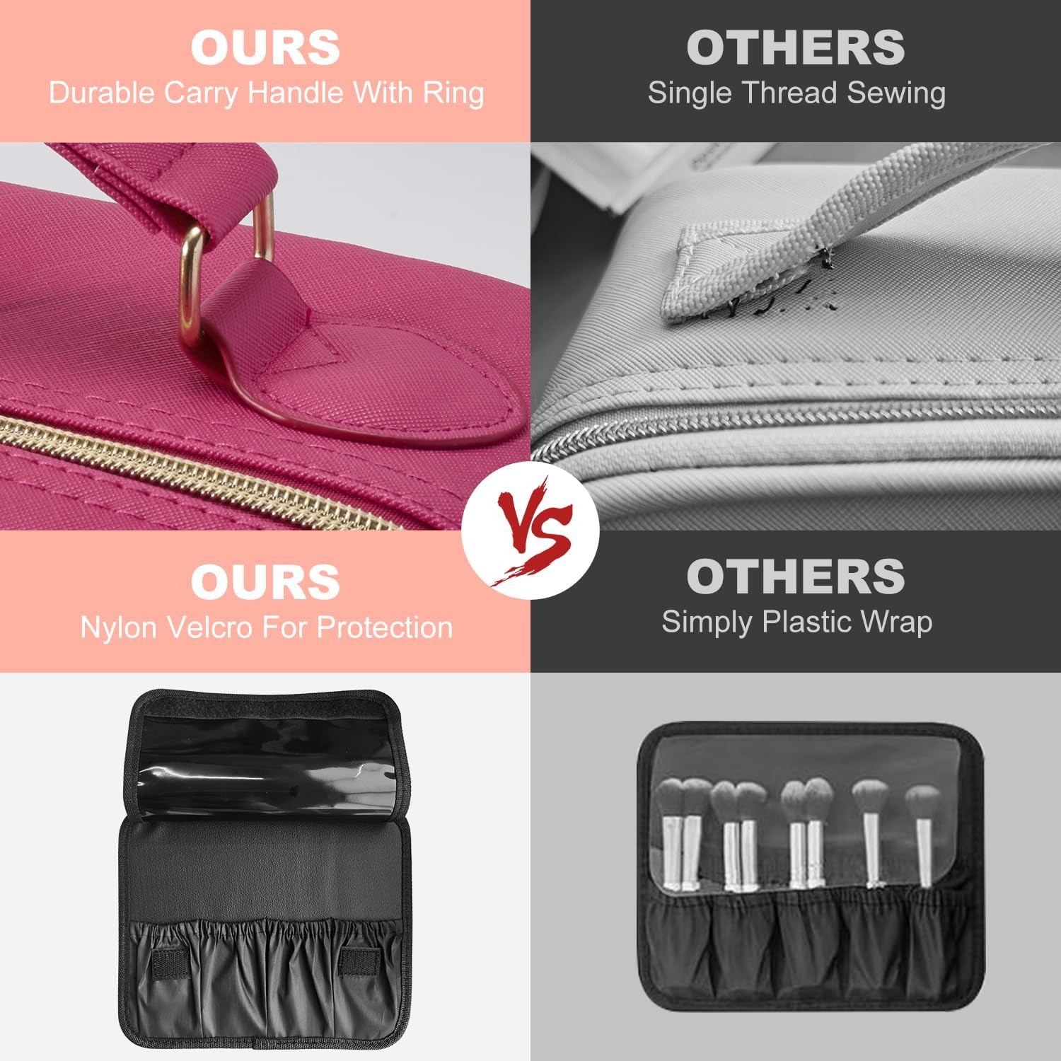 - 👍【Flexible and Large Storage Space】:Reasonable design makes the makeup bag easy to carry, not only can you store cosmetics and makeup tools, but also jewelry, electronic accessories, camera accessories, toiletries, etc. Removable EVA sponge divider Can DIY the space you need to meet your needs. Can accommodate a variety of sizes of cosmetics and makeup brushes. Which can well protect the cosmetics inside, ensure no breakage or leakage, and also keep them clean and dry.