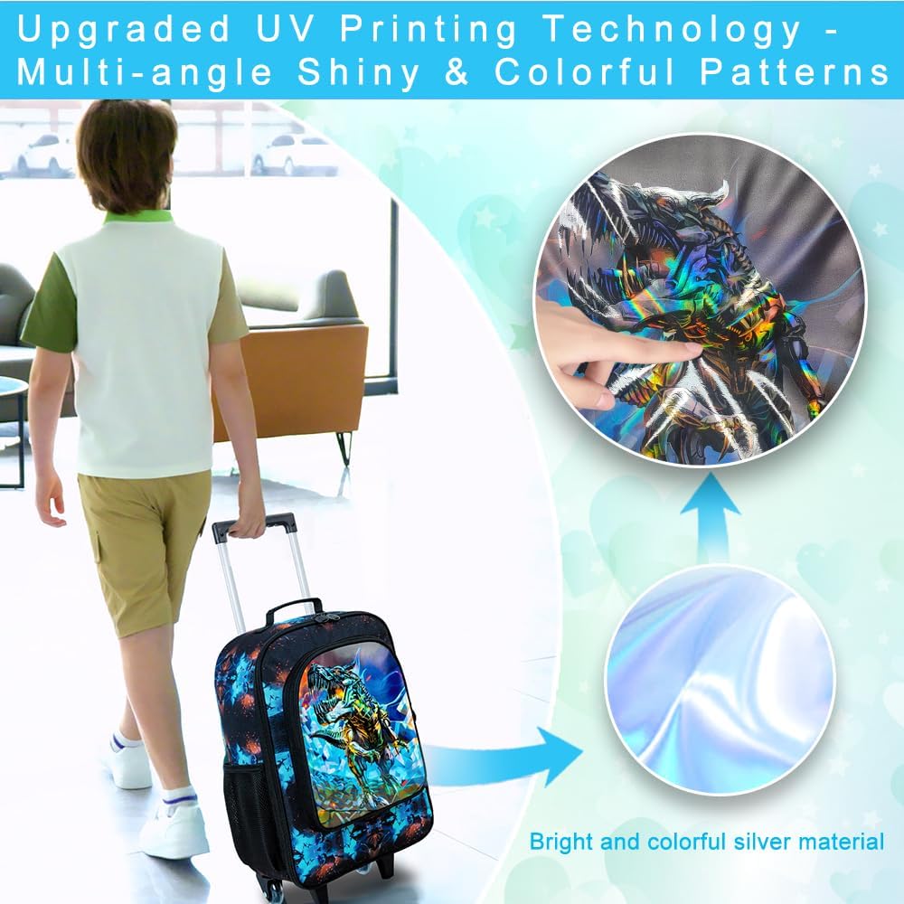 - 【Perfect Rolling Backpack】This is an ideal daily dinosaur rolling suitcase, where children can carry heavy books, laptops, and clothing to school or travel. This is the perfect gift for children on birthdays, Christmas, New Year, or other special occasions.