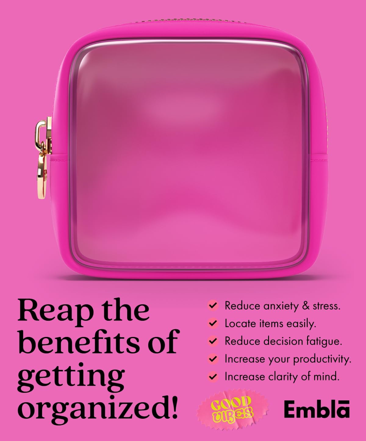 - EMBLA, TRUSTED BY THOUSANDS - Join our huge community who all rave about the superior quality of our products. Looking for a large makeup bag for organization, a small makeup bag for purse or super cute travel pouches? you're in the right place! These bags also make for a great gift for birthdays, bridesmaids, Valentines Day, Mother’s day, Christmas, teacher appreciation and other special occasions.