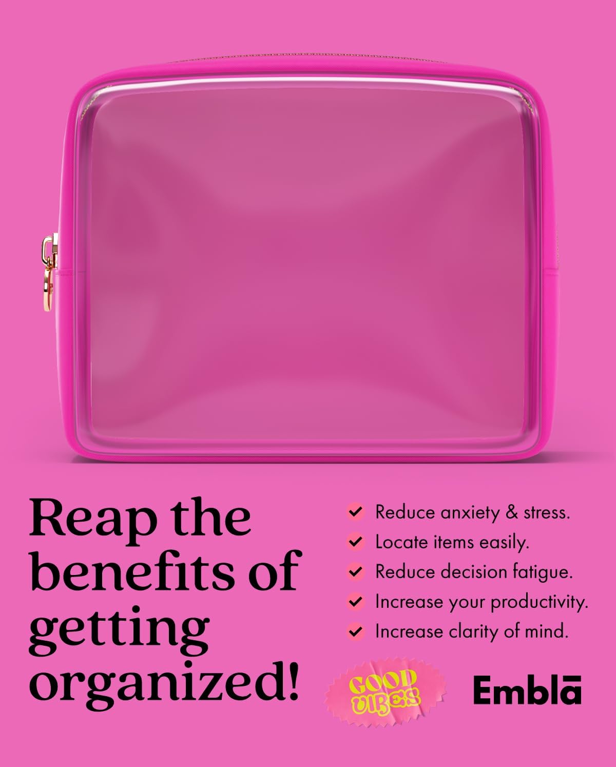- EMBLA, TRUSTED BY THOUSANDS - Join our huge community who all rave about the superior quality of our products. Looking for a large makeup bag for organization, a small makeup bag for purse or super cute travel pouches? you're in the right place! These bags also make for a great gift for birthdays, bridesmaids, Valentines Day, Mother’s day, Christmas, teacher appreciation and other special occasions.