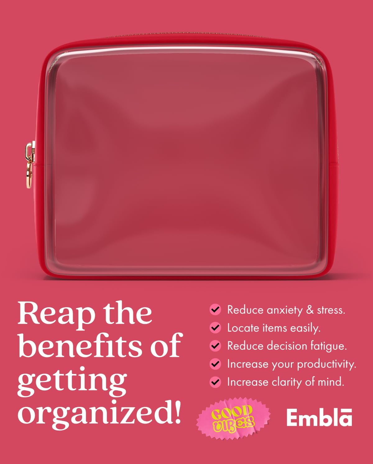 - EMBLA, TRUSTED BY THOUSANDS - Join our huge community who all rave about the superior quality of our products. Looking for a large makeup bag for organization, a small makeup bag for purse or super cute travel pouches? you're in the right place! These bags also make for a great gift for birthdays, bridesmaids, Valentines Day, Mother’s day, Christmas, teacher appreciation and other special occasions.