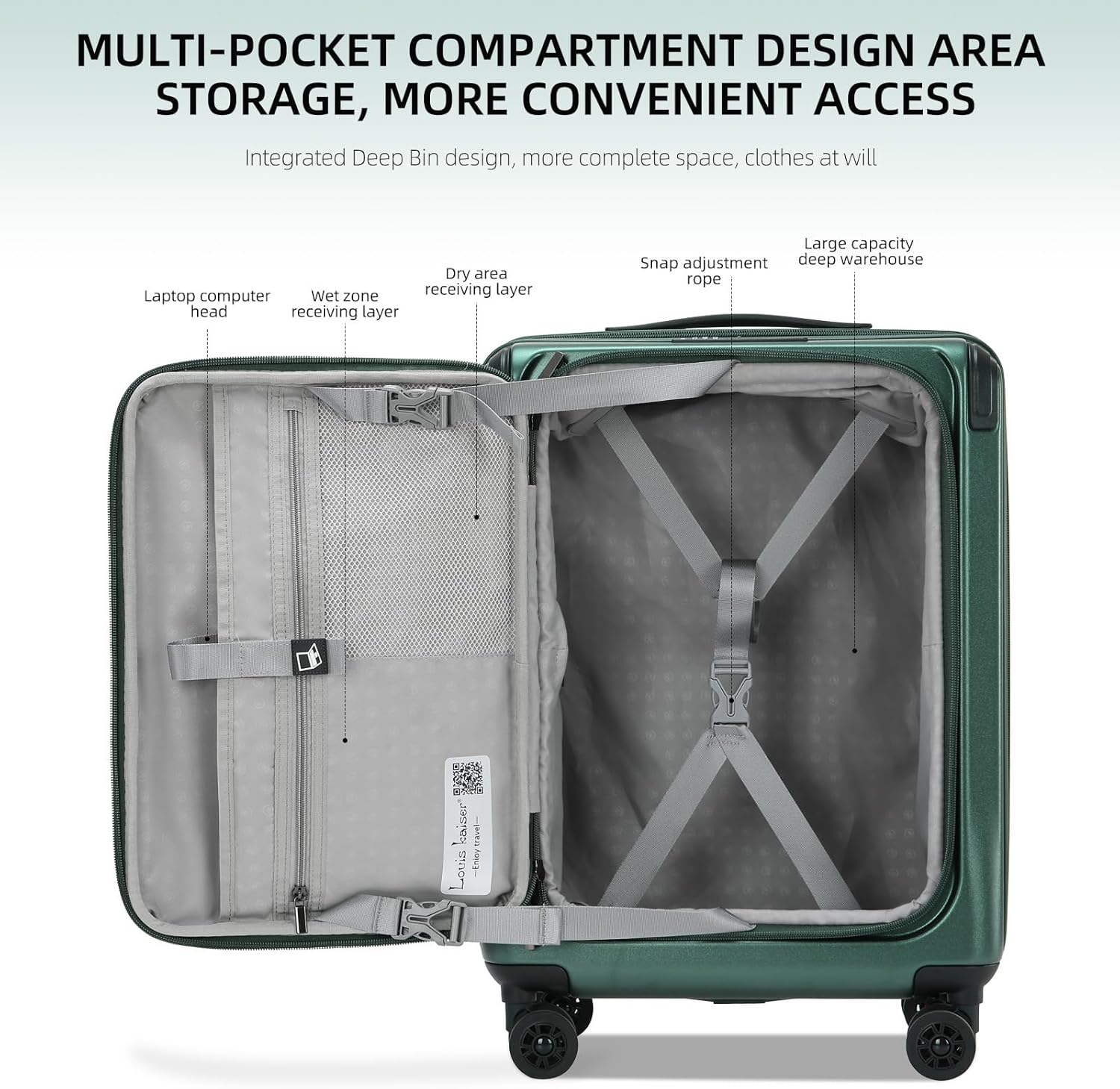 • Convenient and organized storage: With a spacious front pocket, our 20-inch suitcase provides easy access to essential items such as passports, boarding passes, or electronic devices. The interior boasts a high-grade peach skin velvet fabric lining, offering a soft and odorless environment for your clothes and belongings.