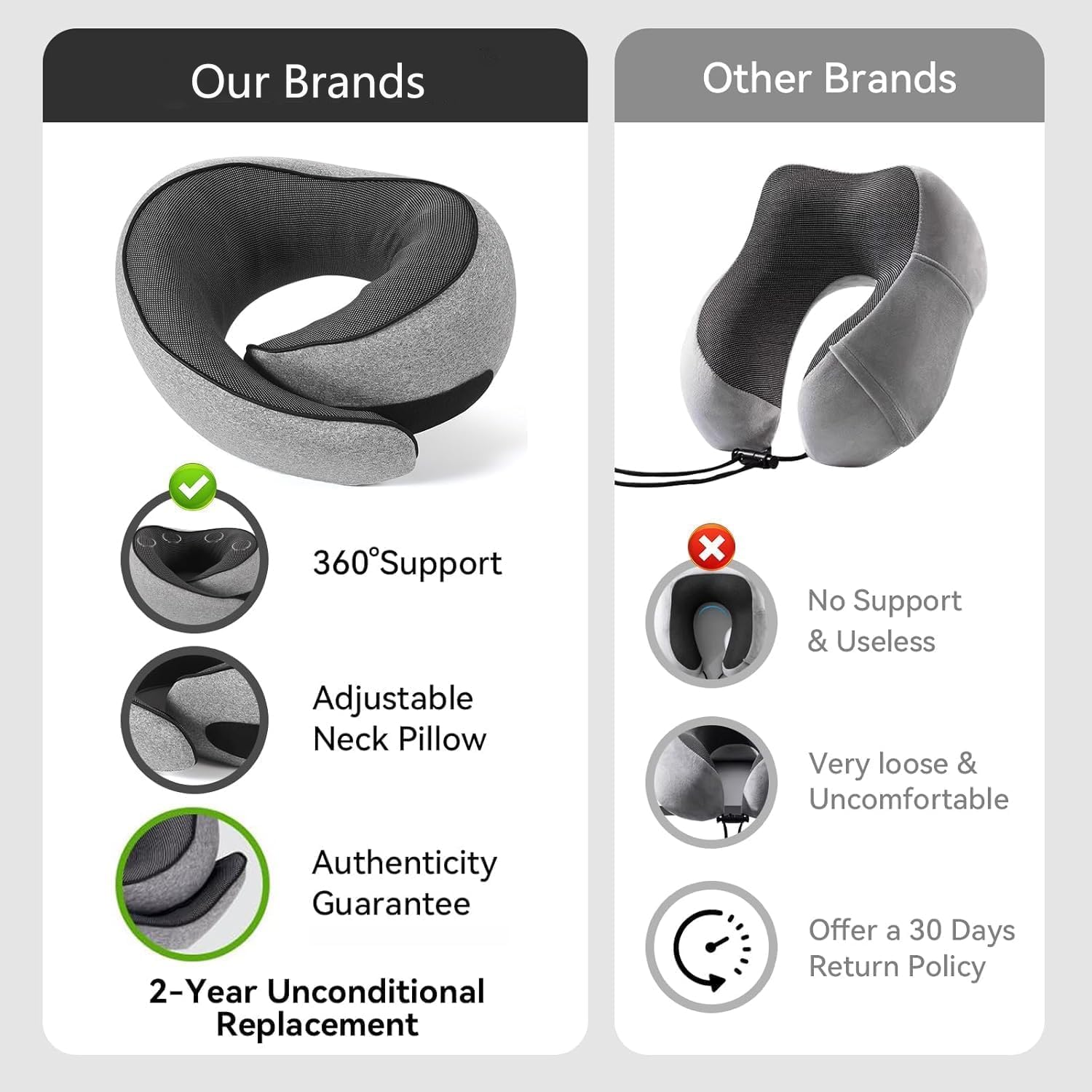 SZXYX Travel Pillows for Airplanes, 100% Pure Memory Foam Neck Pillow for Airplanes, Comfortable Breathable Cover, 360° Support Stowable Pillows for Sleeping, Car, Airport Travel Essentials