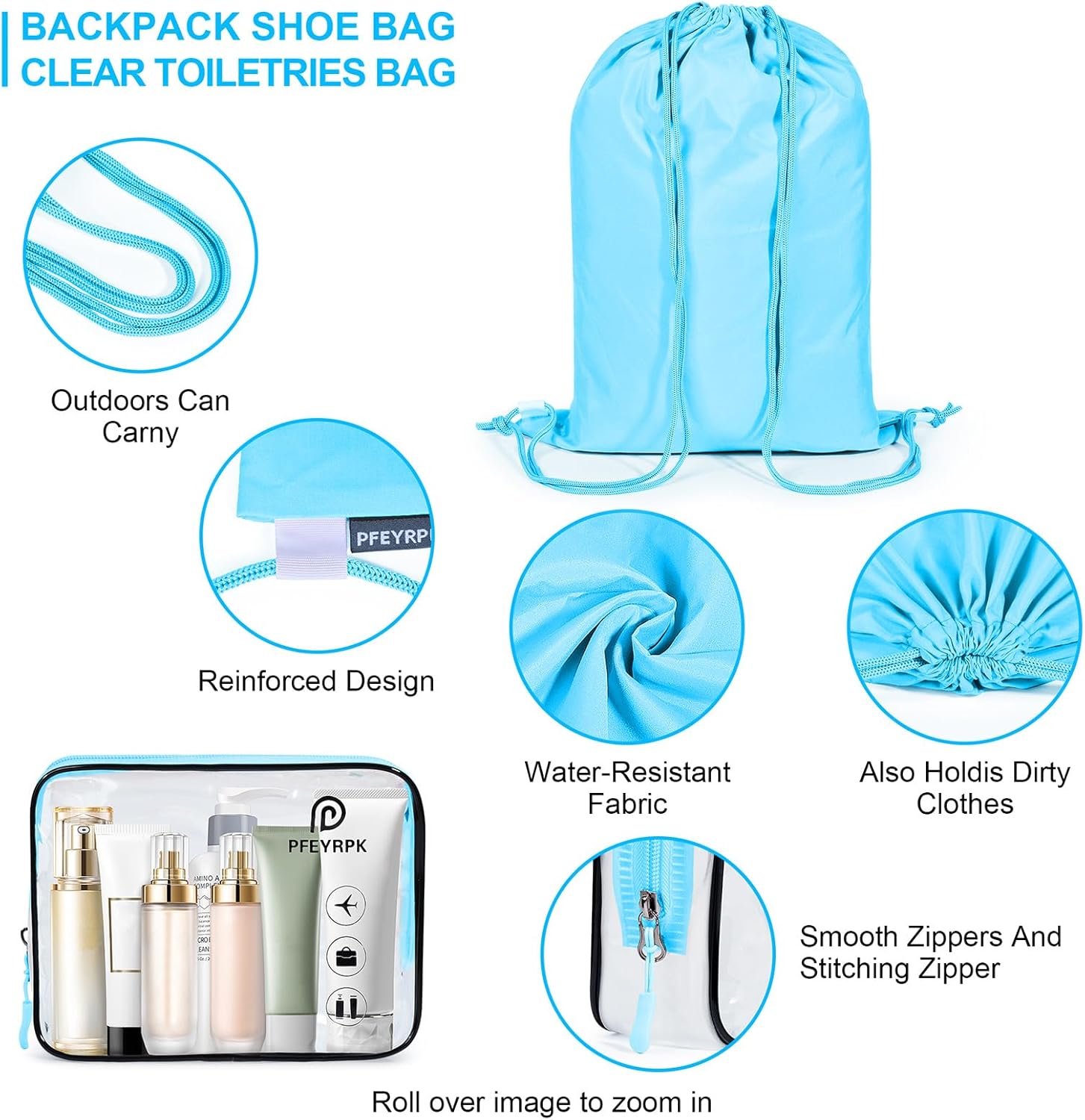 - 【Product Design Details 】This suitcase organizer bag set uses a double zip design to save space and keep everything organized. The additional airline compliant toiletries bag makes it secure and visible. The backpack bag used as a dirty laundry bag or shoe bag is suitable for short trips or outdoor activities
