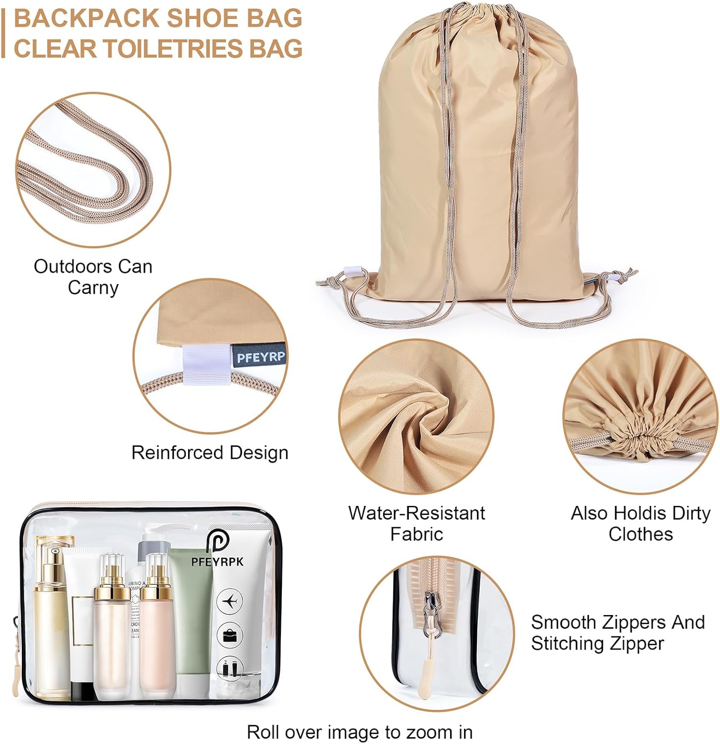 - 【Product Design Details 】This suitcase organizer bag set uses a double zip design to save space and keep everything organized. The additional airline compliant toiletries bag makes it secure and visible. The backpack bag used as a dirty laundry bag or shoe bag is suitable for short trips or outdoor activities