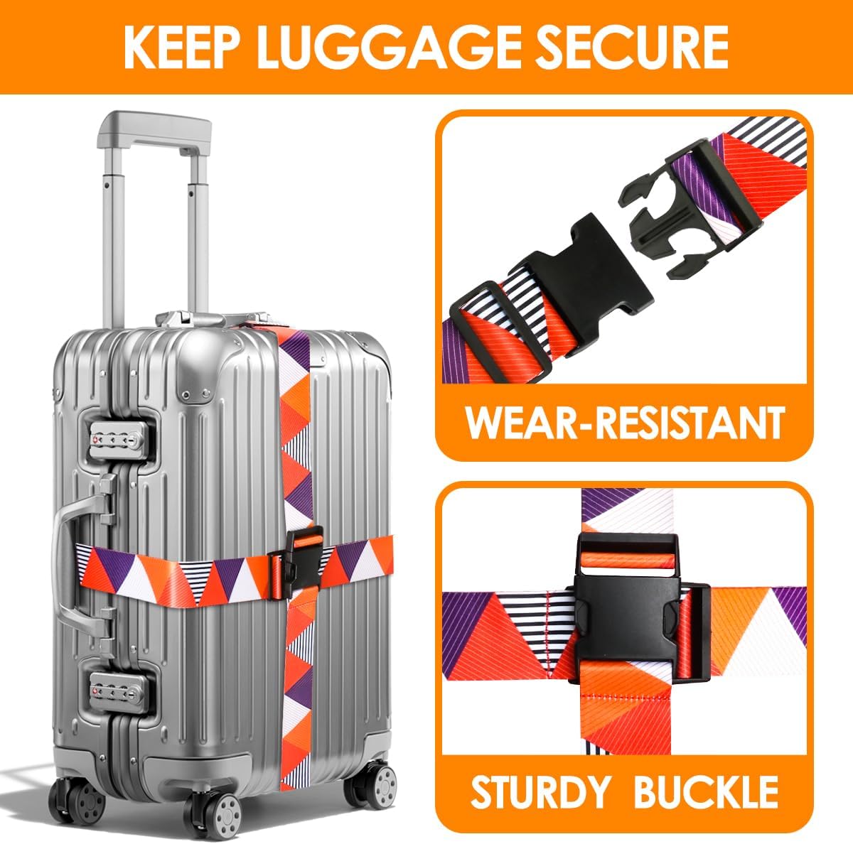 - MADE FOR LONG-LASTING USE: The luggage belt is made from durable polyester, it does not snap when bent inward or outward! The travel belts are equipped with secure quick-release buckles that are easy to open and close