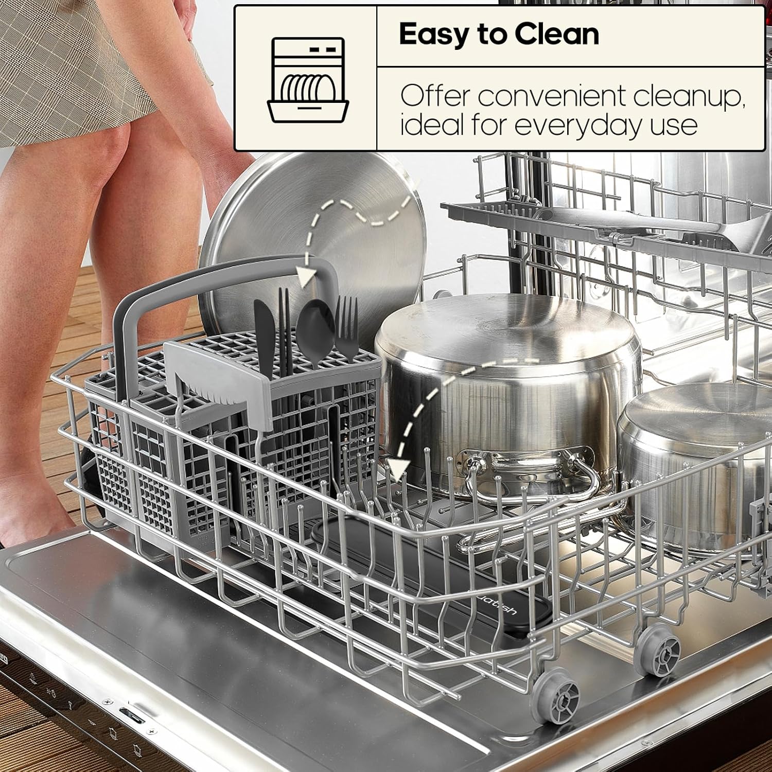 - Modern Design: Classic silhouette with clean lines and polish-finish surface, a good choice to go with your existing tableware .Long-lasting reusable utensils with case also dishwasher-safe