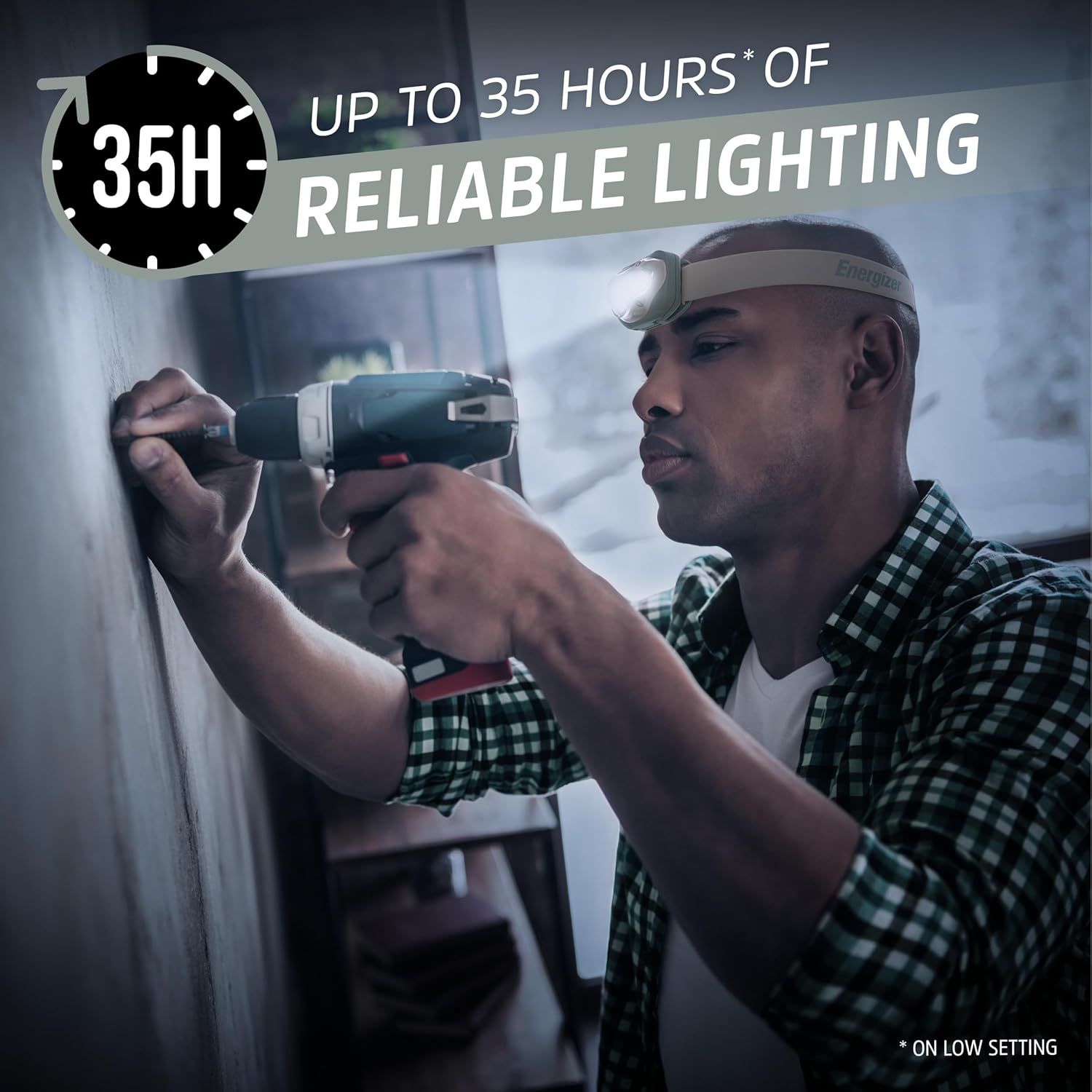 - [Headlamp LED Light]: Two (2) Energizer Vision HD + LED Headlamp offers a hands-free, bright LED light with a long runtime for extended use