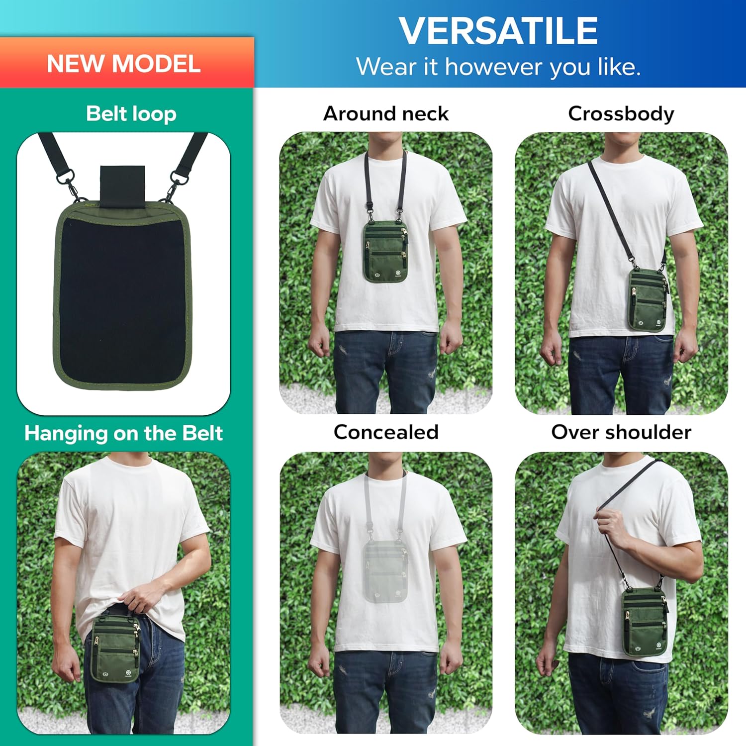 Neck Wallet – Travel Pouch and RFID Blocking Passport Holder for Women and Men, Slim Travel Wallet (Army Green)