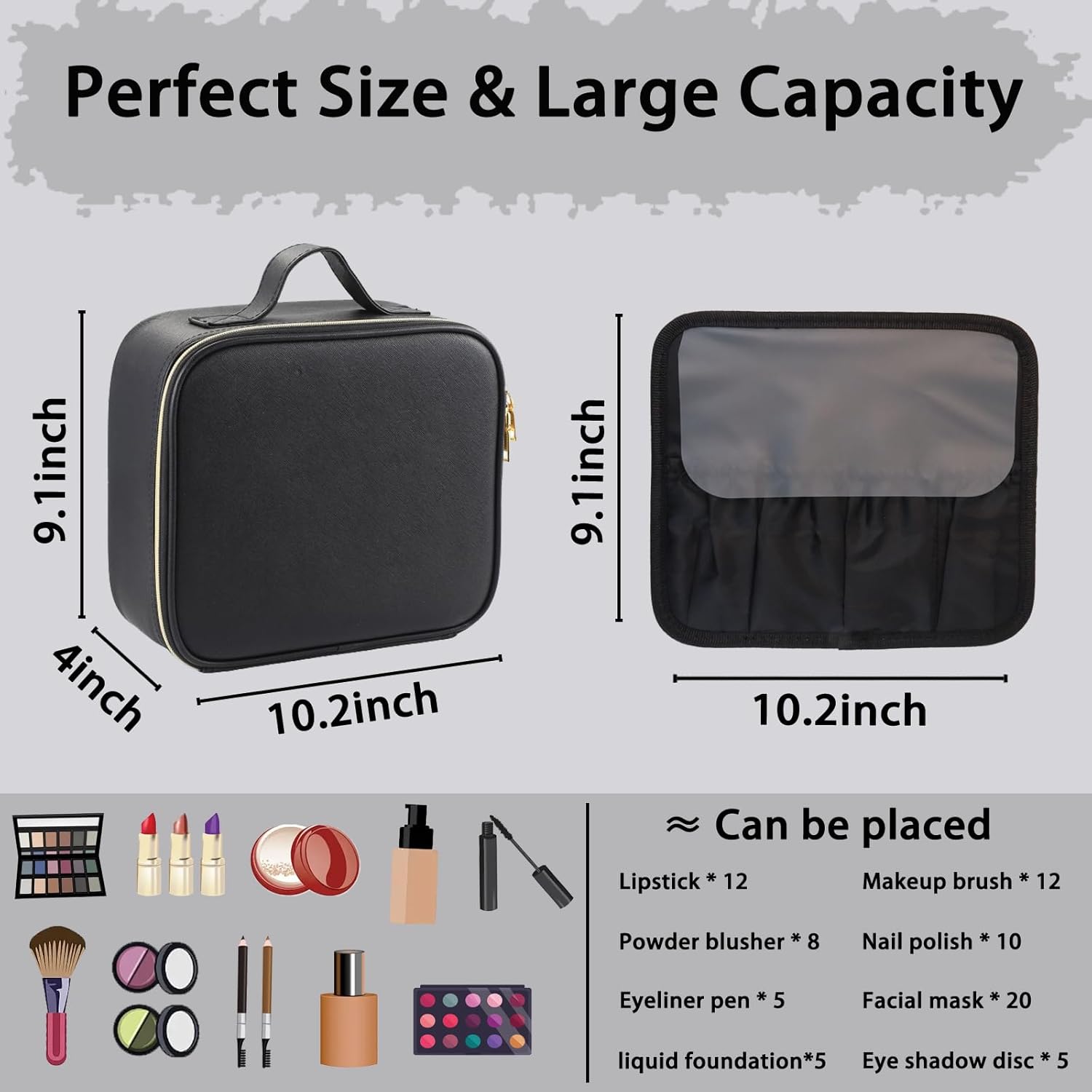 Makeup Bag with Led Mirror,Travel Makeup Organizer with 3 Color Setting, Portable Storage and Adjustable Dividers Travel Makeup Bag(Black)
