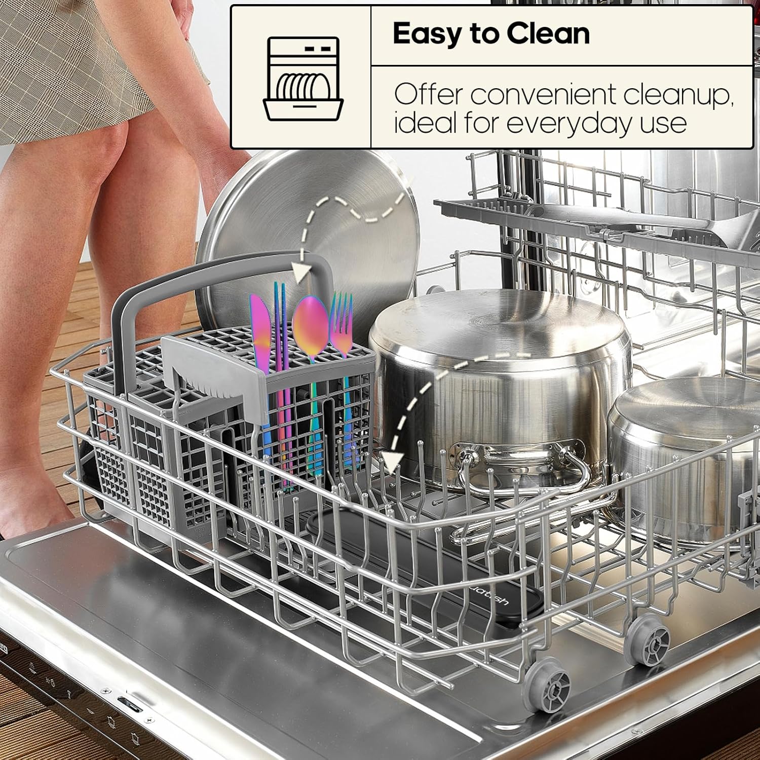 - Modern Design: Classic silhouette with clean lines and polish-finish surface, a good choice to go with your existing tableware .Long-lasting reusable utensils with case also dishwasher-safe
